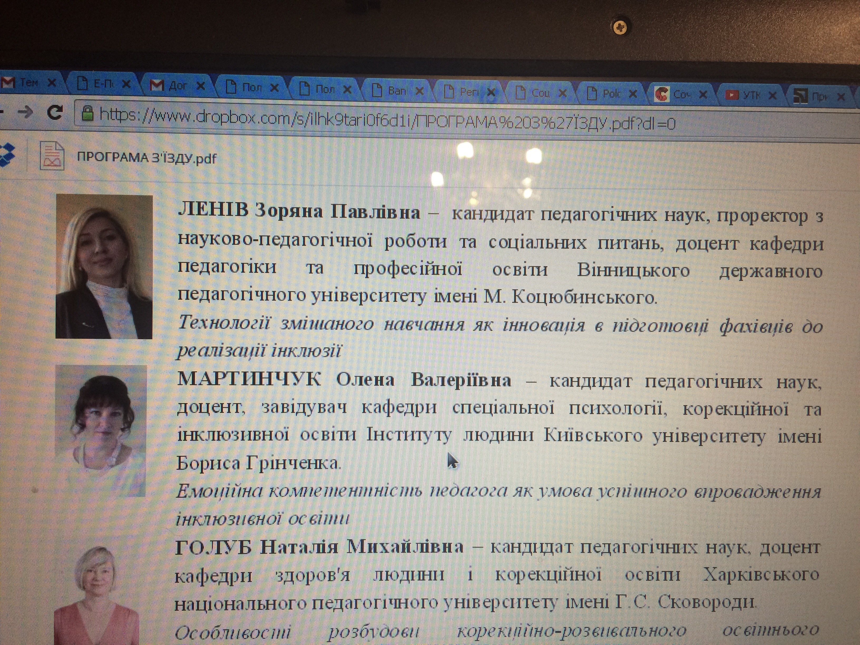 | 1259 | I з'їзд корекційних педагогів України "Актуальні питання соціалізації дітей з особливими освітніми потребами" | Емоційна компетентність педагога як умова успішного впровадження інклюзивної освіти | м. Дніпро, Україна |