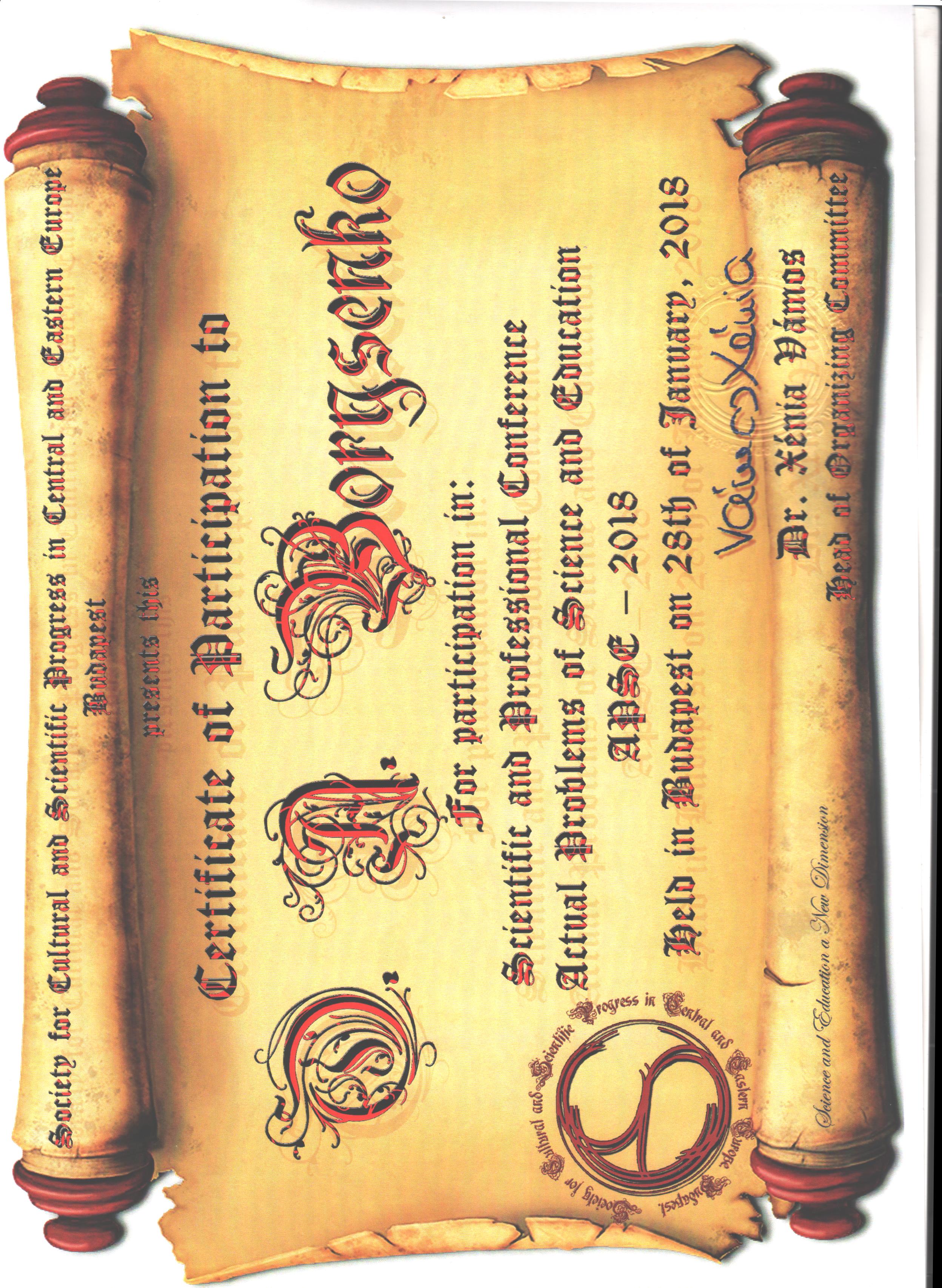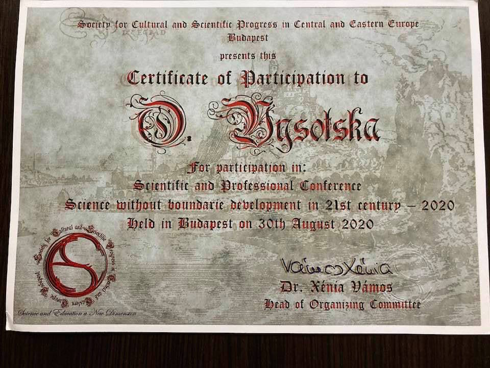 | 7591 | 3. International Scientifc and Practical Conference Actual Problems of Science and Education | Media literacy: Ukrainian Perspective (співавтор — доц. С.С. Висоцька) | Budapest, Hungary Science and Education. A New Dimention |