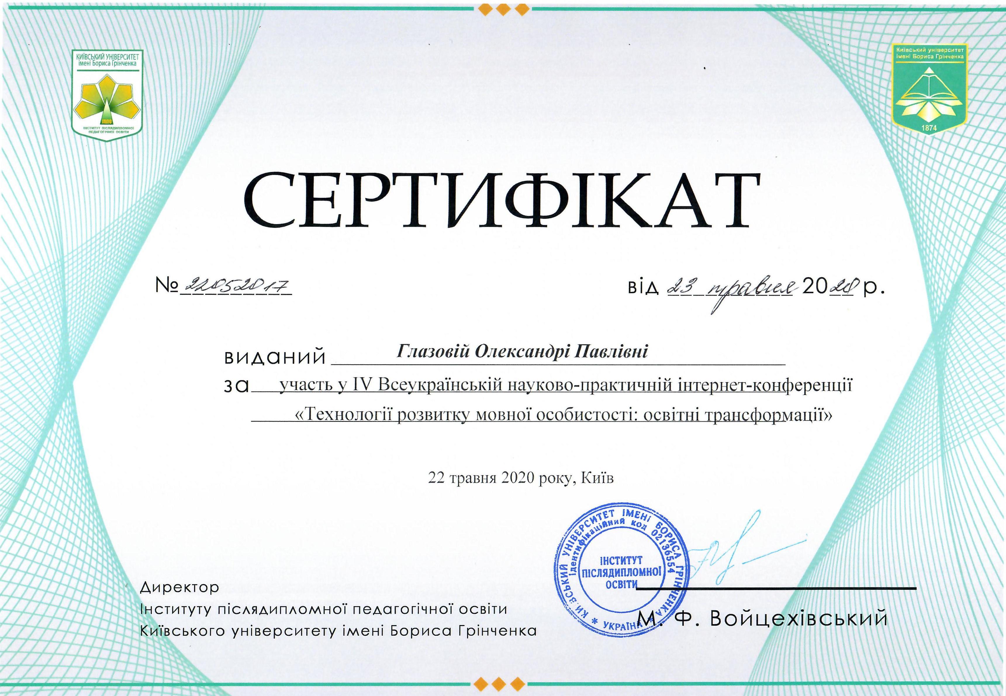 | 382 | Інститут післядипломної освіти | Кафедра мовно-літературної освіти | 10.1 | 0 | 2020 | https://www.researchgate.net/profile/Oleksandra_Glazova |