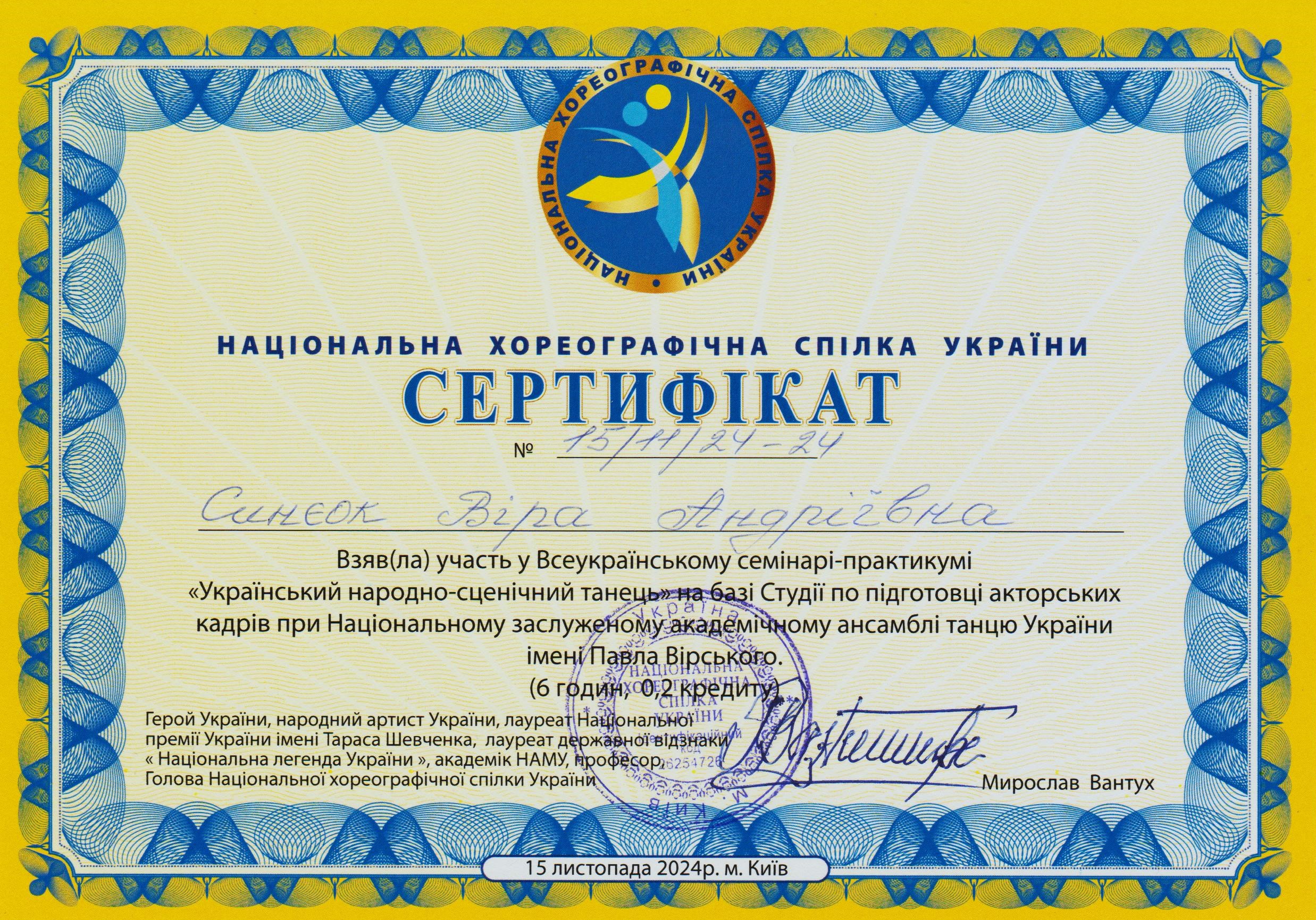 | 10321 | Всеукраїнський семінар-практикум «Особливості навчально-виховного процесу різних вікових категорій на основі народно-сценічного танцю» | Особливості виконання Азербайджанських, Молдавських та Італійських народно-сценічних танців | Київ |