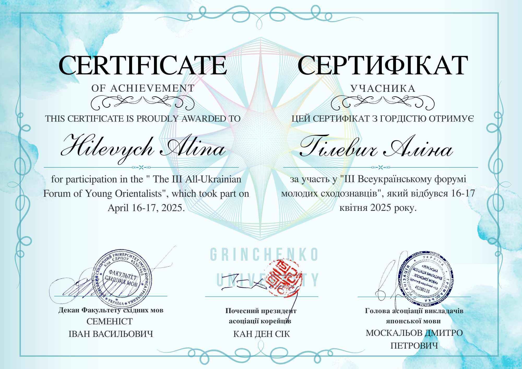 | 12005 | ІІІ Всеукраїнський форум молодих сходознавців | Гейміфікація у викладанні лексики японської мови: теоретичні засади та практичні підходи. | Київський столичний університет імені Бориса Грінченка |