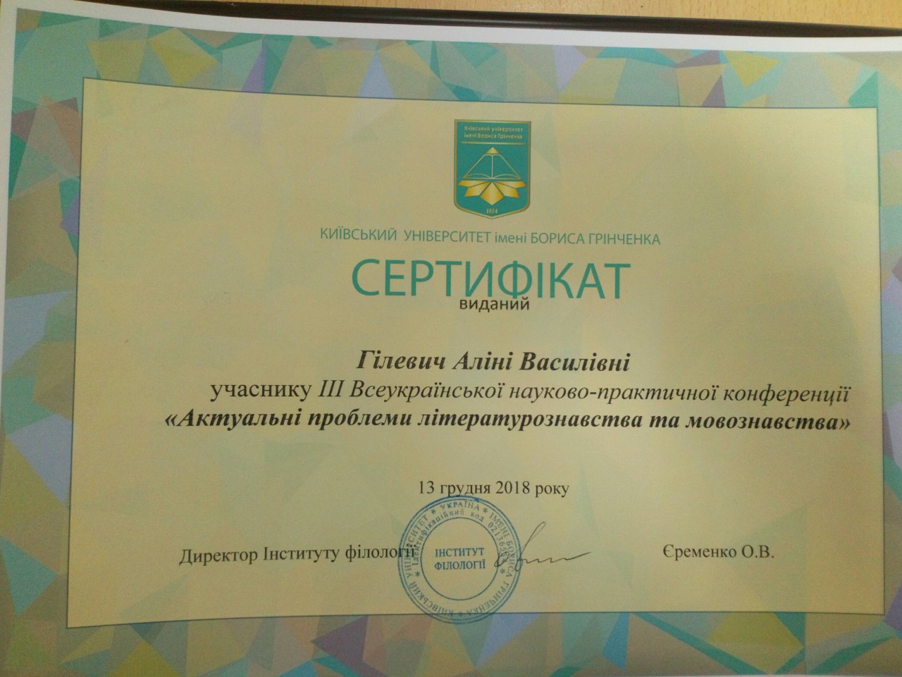 | 3977 | III Всеукраїнська науково-практична конференція "Актуальні проблеми літературознавства та мовознавства" | Hard & soft skills сучасного 教師(викладача): проблеми викладання східних мов в ХХІ столітті. | Київський університет імені Бориса Грінченка |