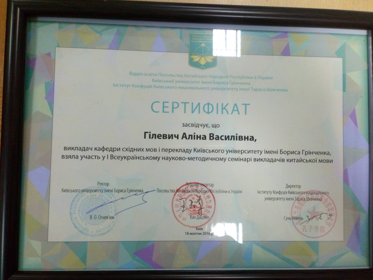 | 119 | Клас Конфуція Київського університету імені Бориса Грінченка | Посольство Китайської Народної Республіки в Україні | Коллективний | - | 2018 |