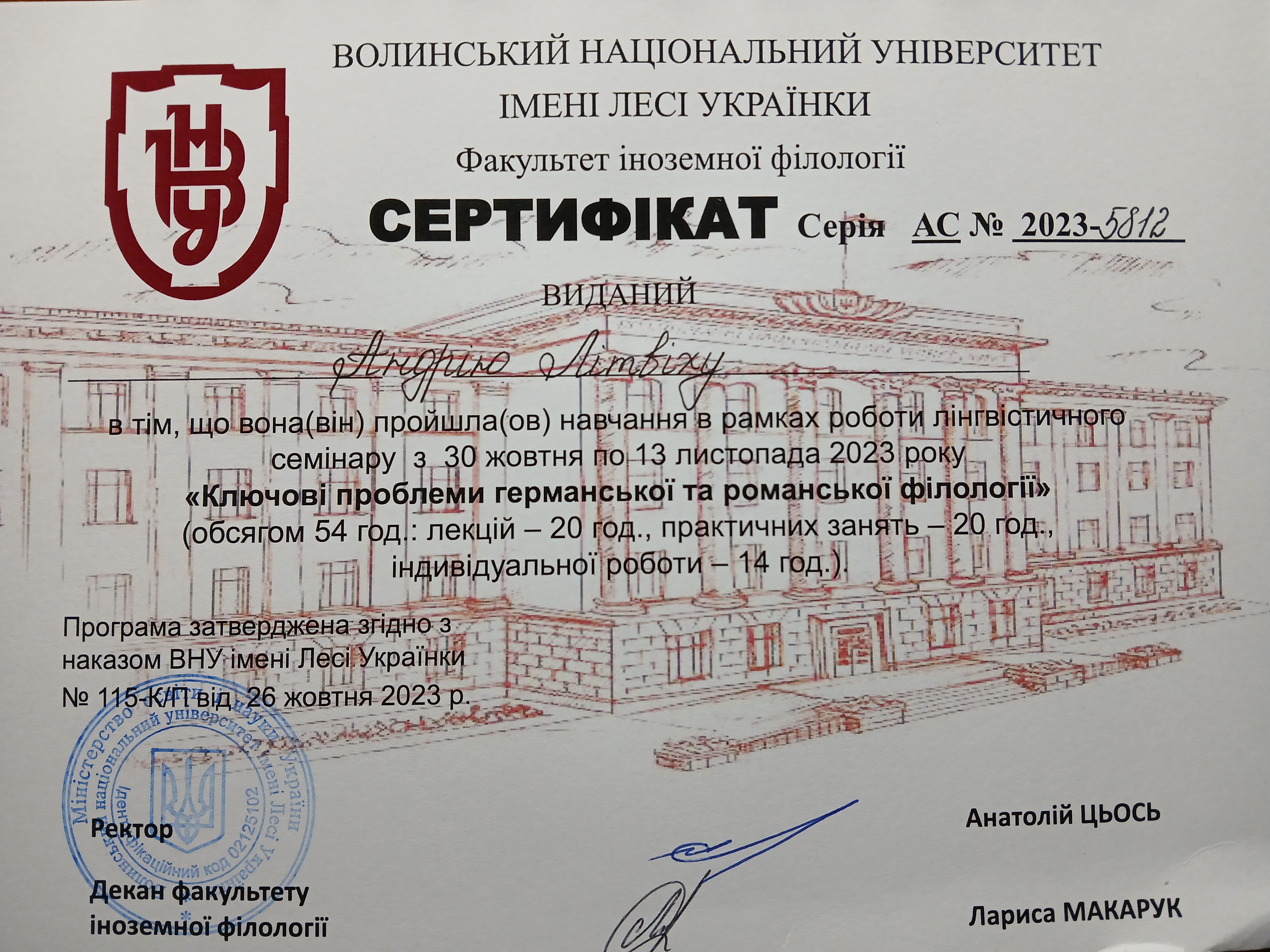 | 1173 | Факультет романо-германської філології | Кафедра романської філології | 7.8 | 0 | 2025 | https://www.researchgate.net/profile/Andrii-Litvikh |