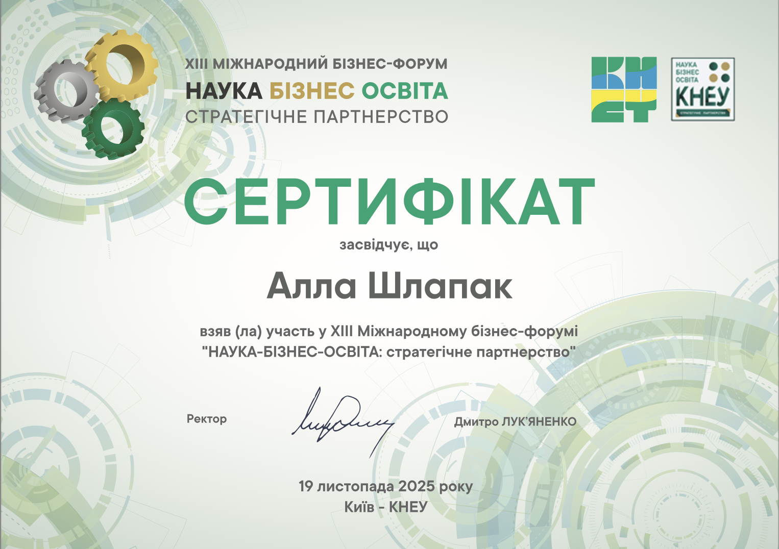 994 Факультет економіки та управління Кафедра міжнародної економіки 185.8 5 2025 https://www.researchgate.net/profile/Alla-Shlapak/stats