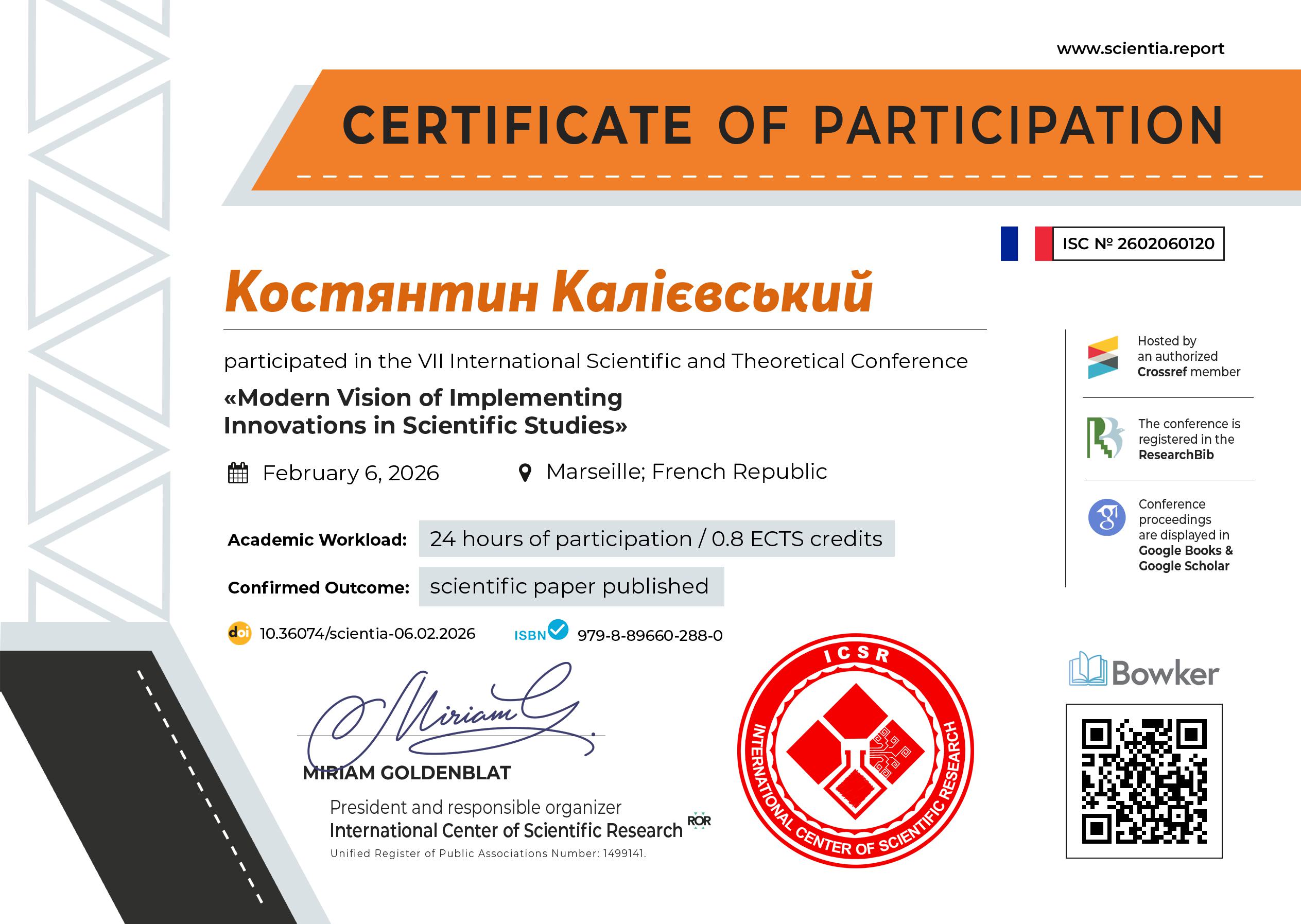 VII Міжнародна науково-теоретична конференція «Modern Vision of Implementing Innovations in Scientific Studies».