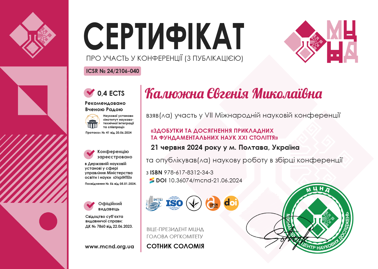 | 11654 | Здобутки та досягнення прикладних та фундаментальних наук XXI століття | Мотивація навчання здобувачів освіти: динаміка і фактори | Полтава |