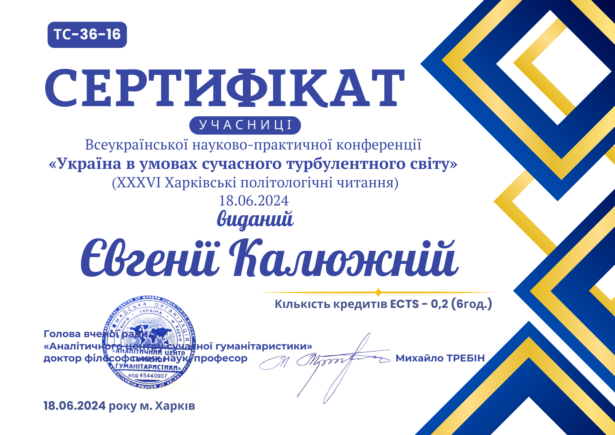 | 9918 | Військова психологія для психолога | Інший модуль | Витяг-Калюжна_Є.pdf | 17.04.2024 00:00 |