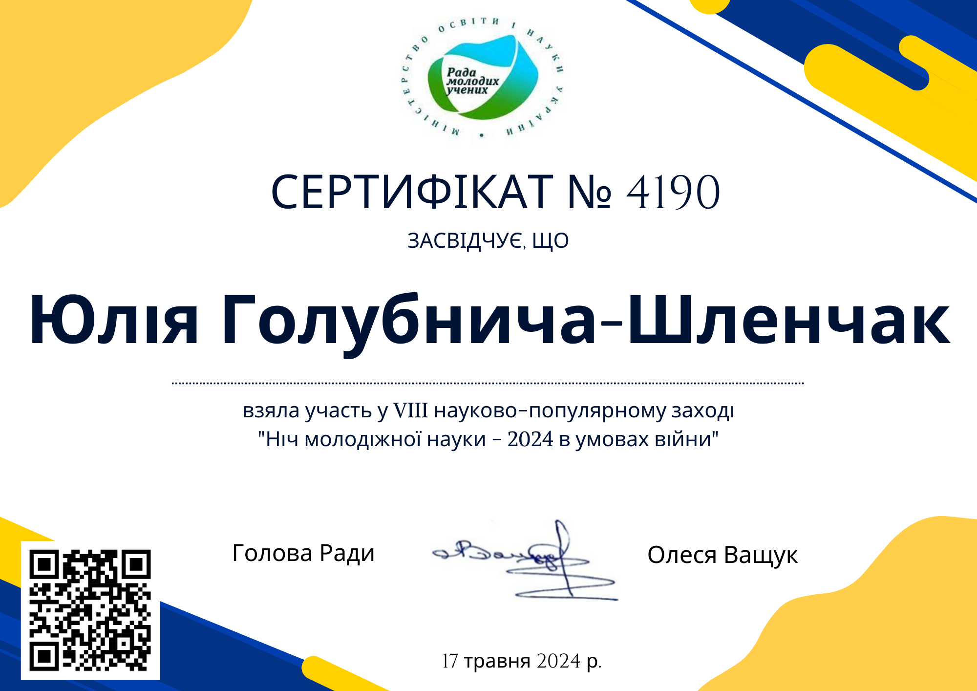 | 10526 | "Ніч молодіжної науки - 2024 в умовах війни" | Збереження та популяризація культурної спадщини: кейси НТ Університету Грінченка і виклики сьогодення | онлайн конференція |