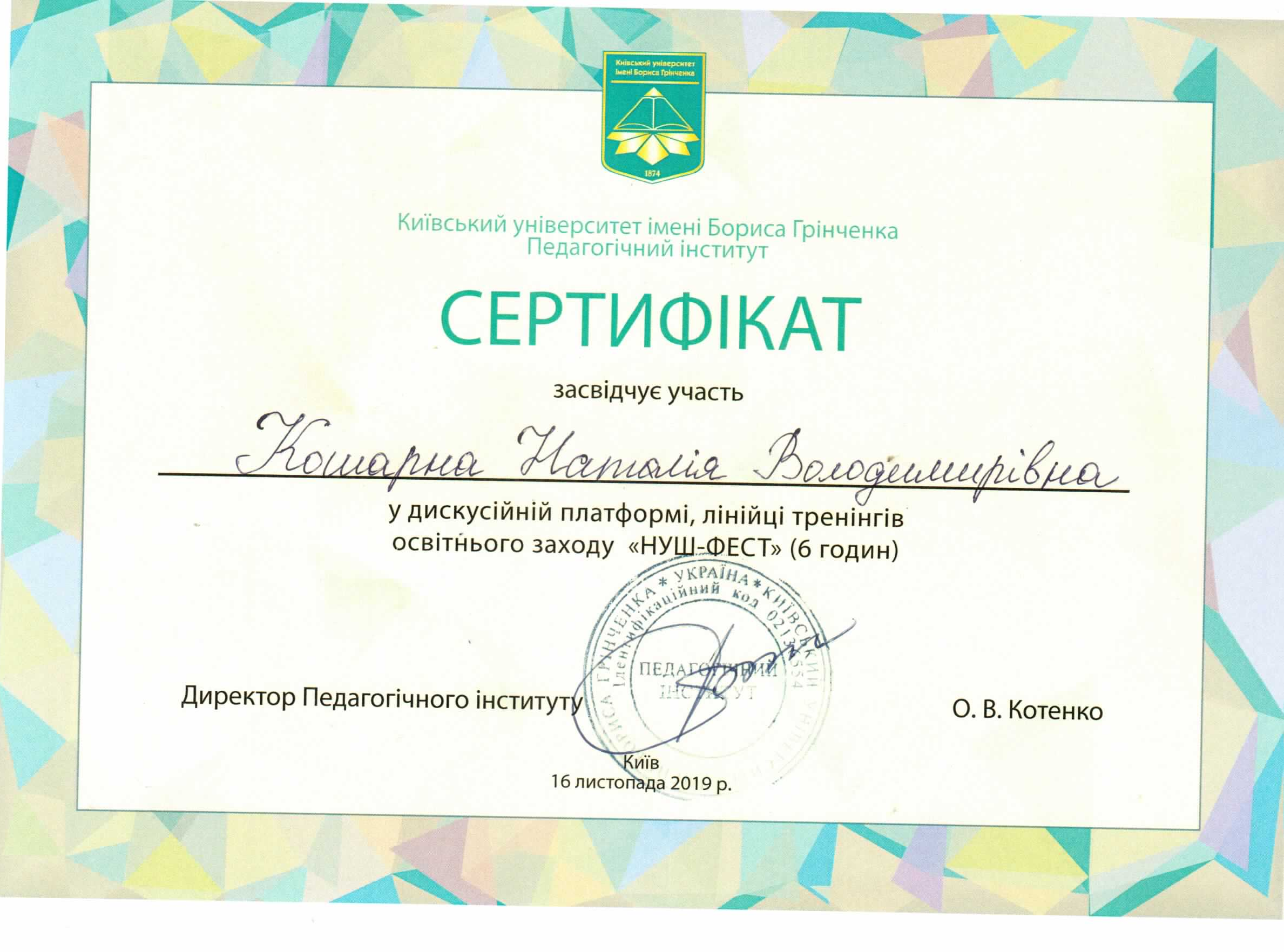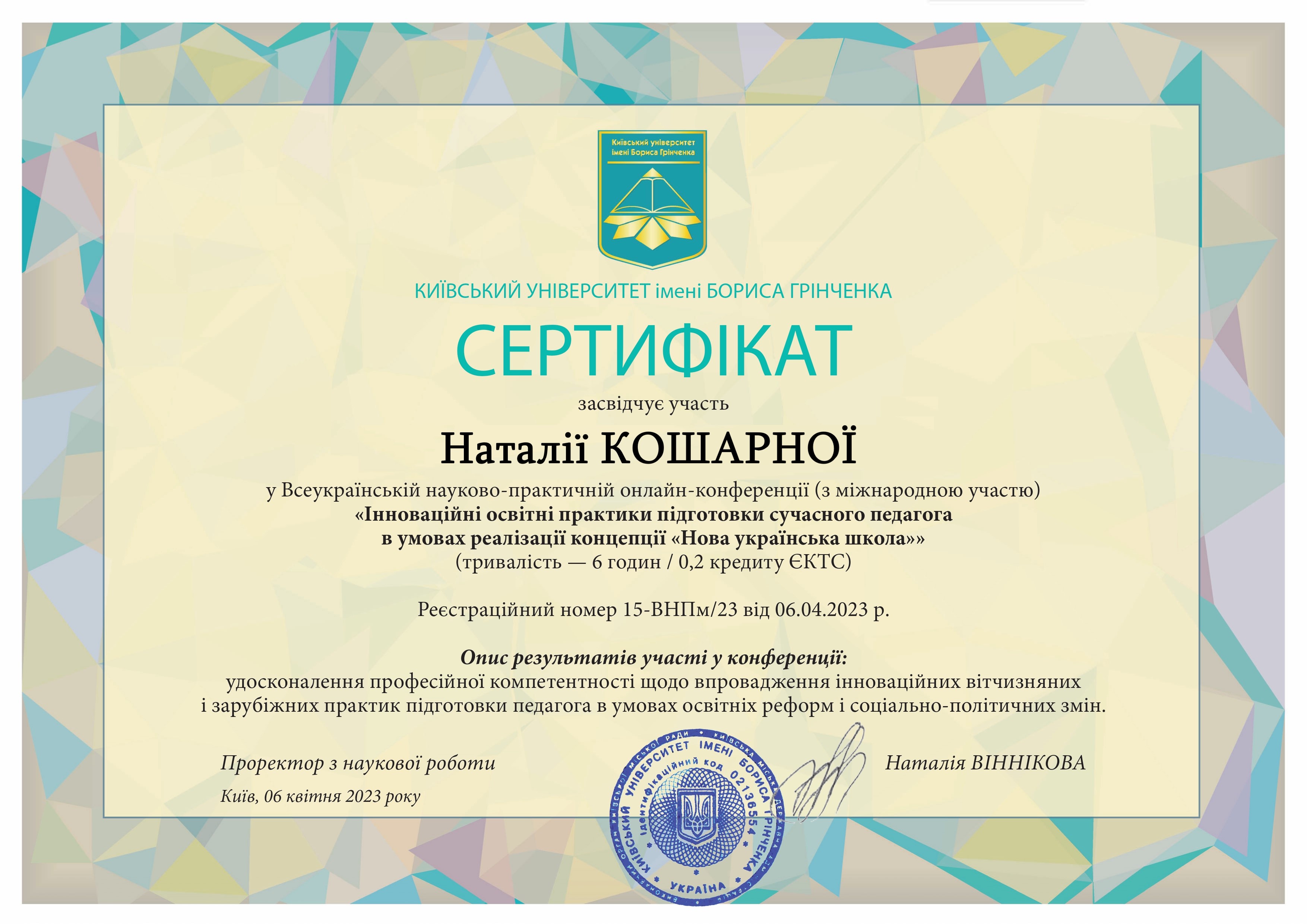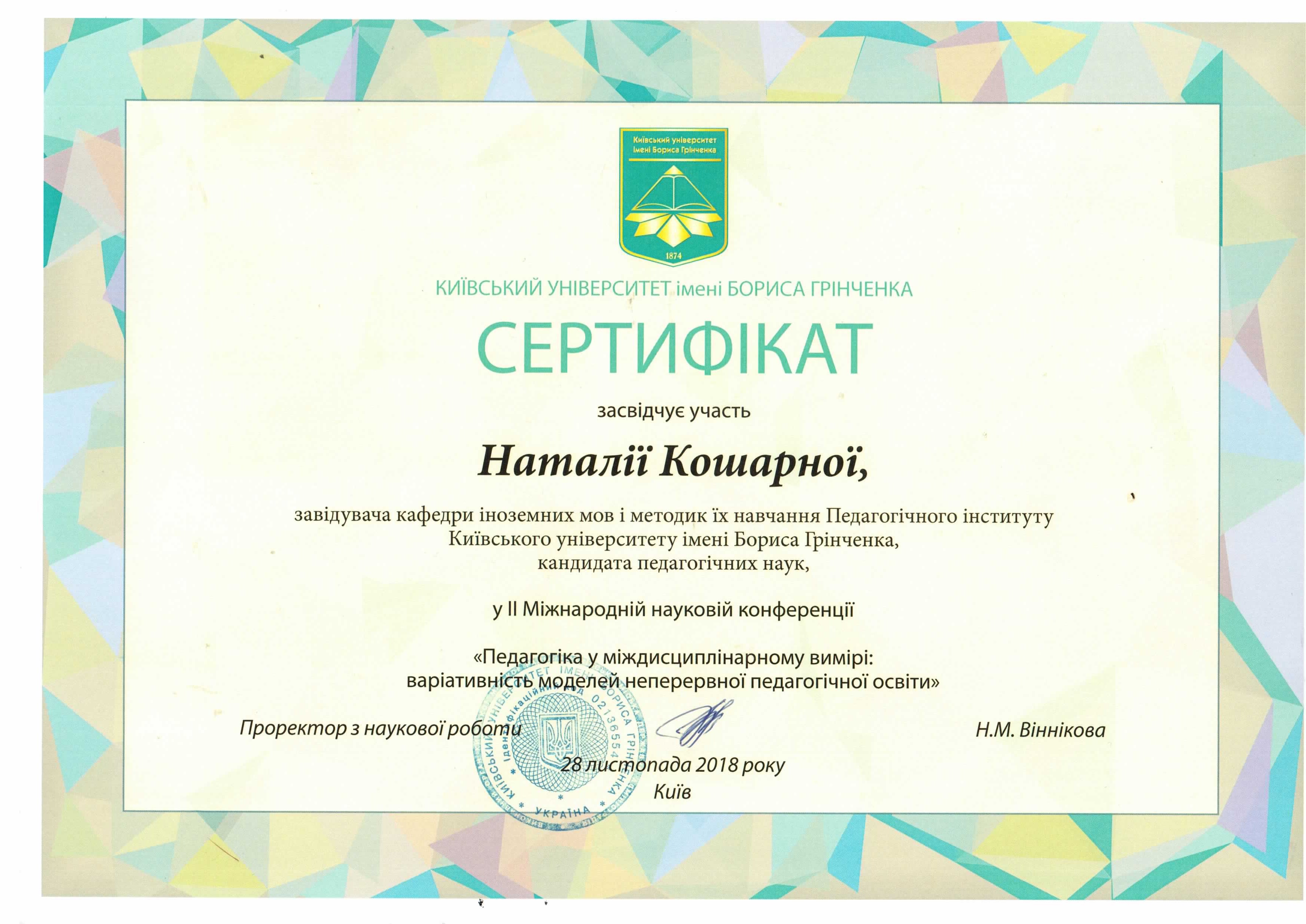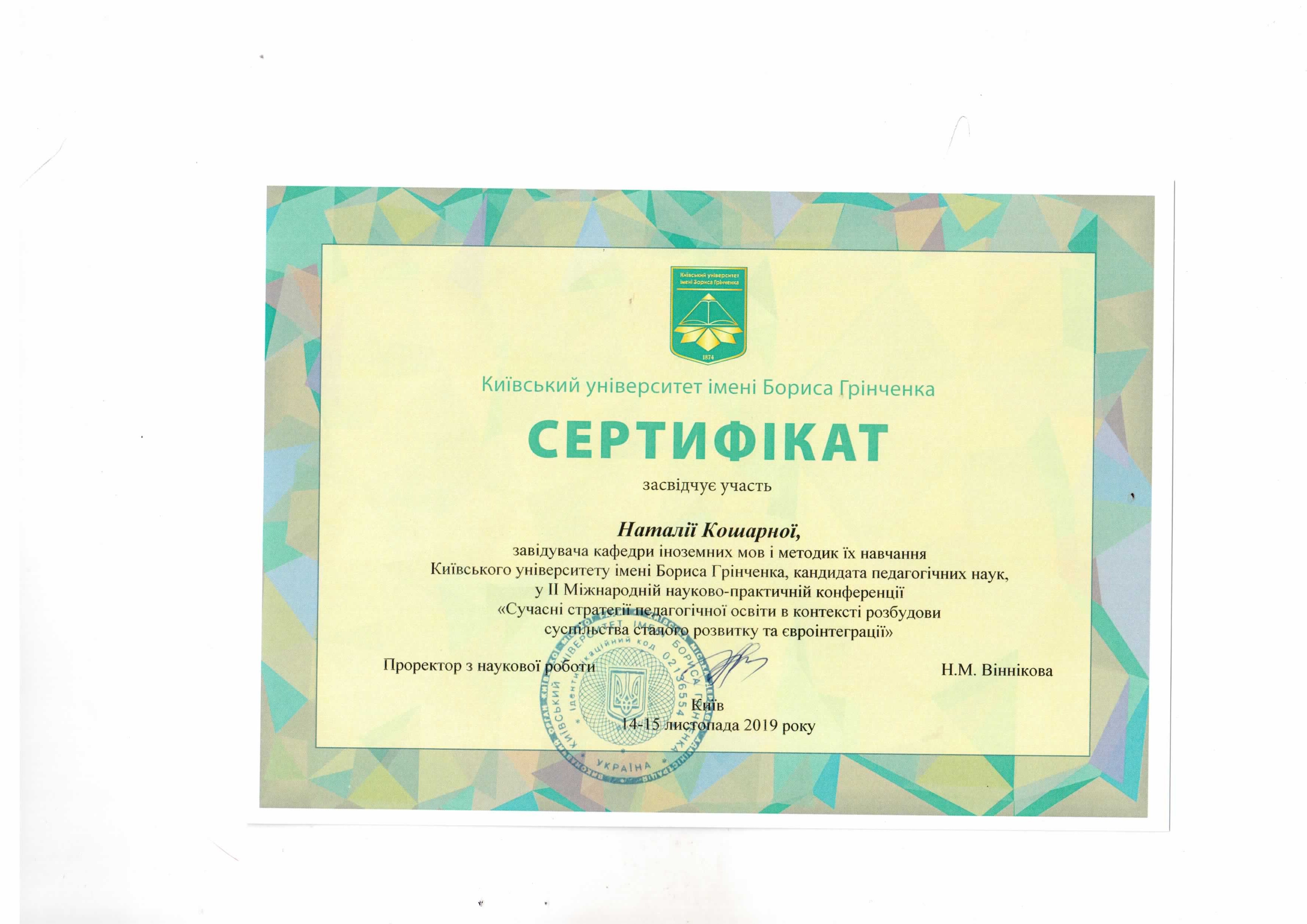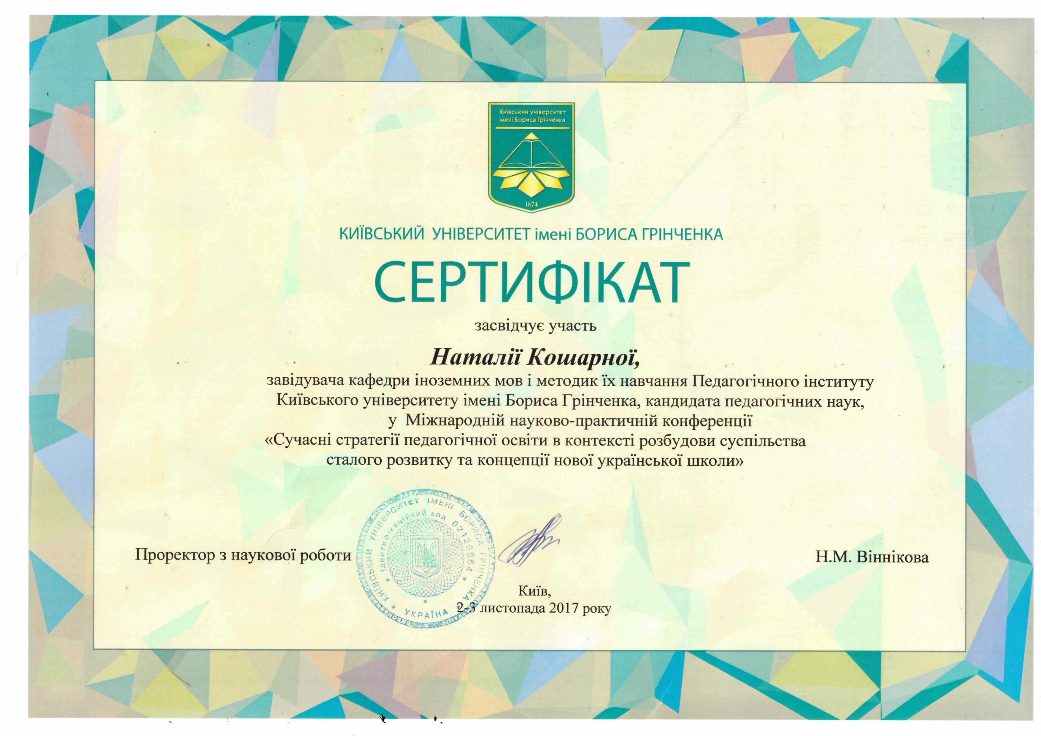 | 2492 | Сучасні стратегії педагогічної освіти в контексті розбудови суспільства сталого розвитку та концепції нової української школи | - | Київський Університет імені Бориса Грінченка, м. Київ |