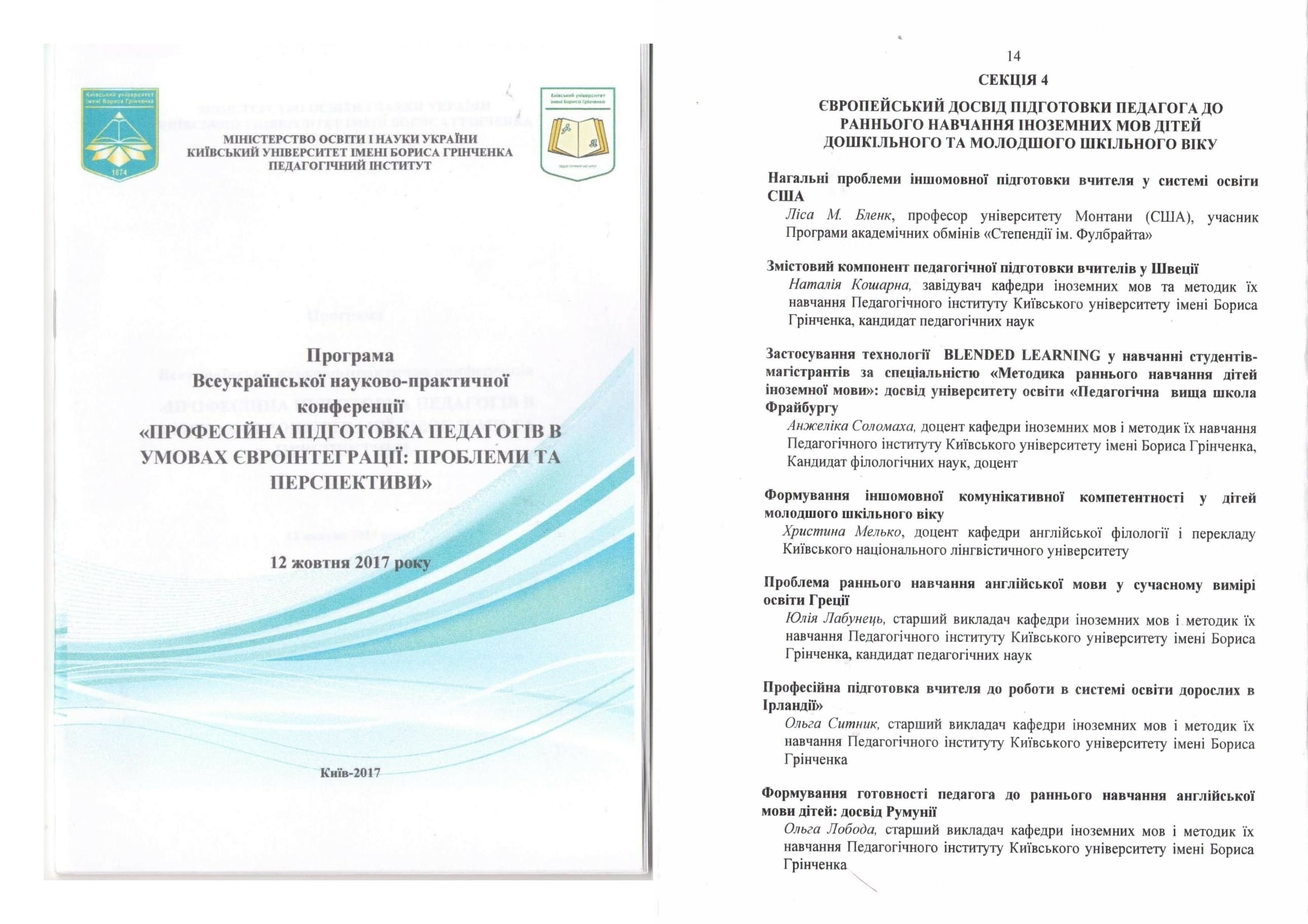 | 9369 | Інноваційні освітні практики підготовки сучасного педагога в умовах реалізації концепції «Нова українська школа» | ІНШОМОВНА ПІДГОТОВКА ПЕДАГОГА В УМОВАХ СУЧАСНИХ ОСВІТНІХ РЕФОРМ | Київ, Україна |