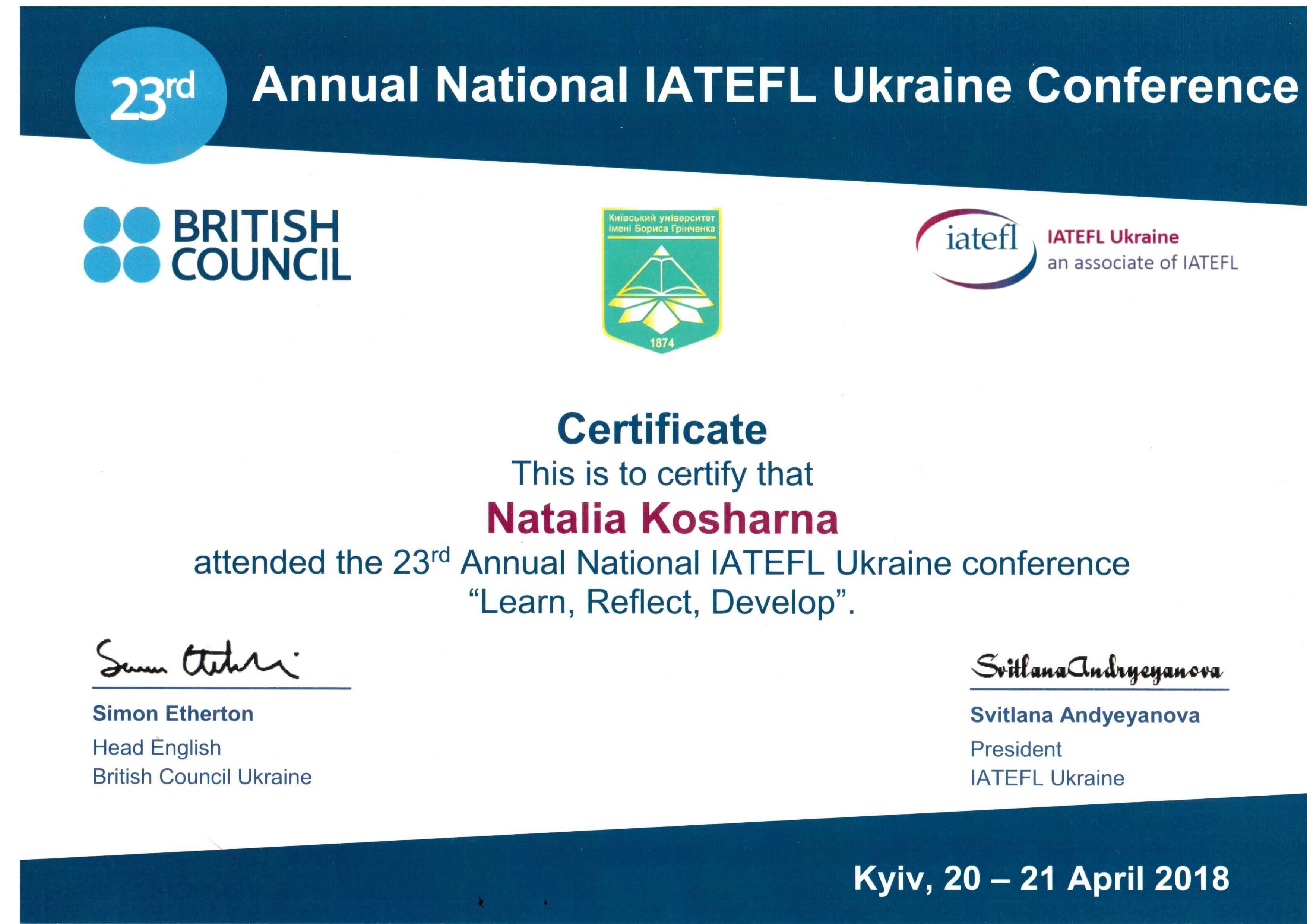 | 2494 | Annual National IATEFL Ukraine Conference | - | The National University of Life and Environmental Sciences of Ukraine, Kyiv |