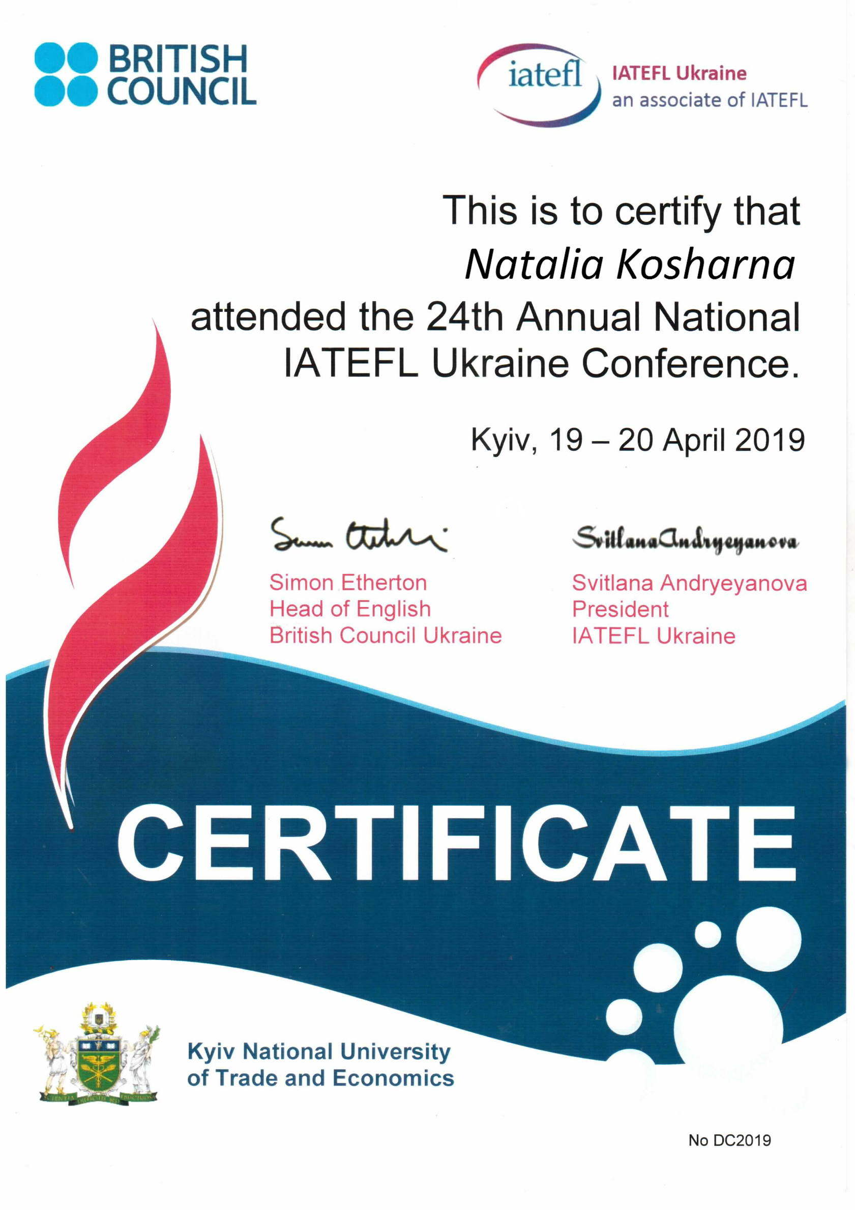 | 4097 | 24th Annual National IATEFL Ukraine Conference | - | Kyiv National University of Trade and Economics |