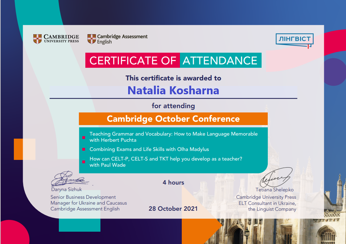 | 7600 | Cambridge October Conference | Teaching Foreign Language | Ukraine_ Great Britain |