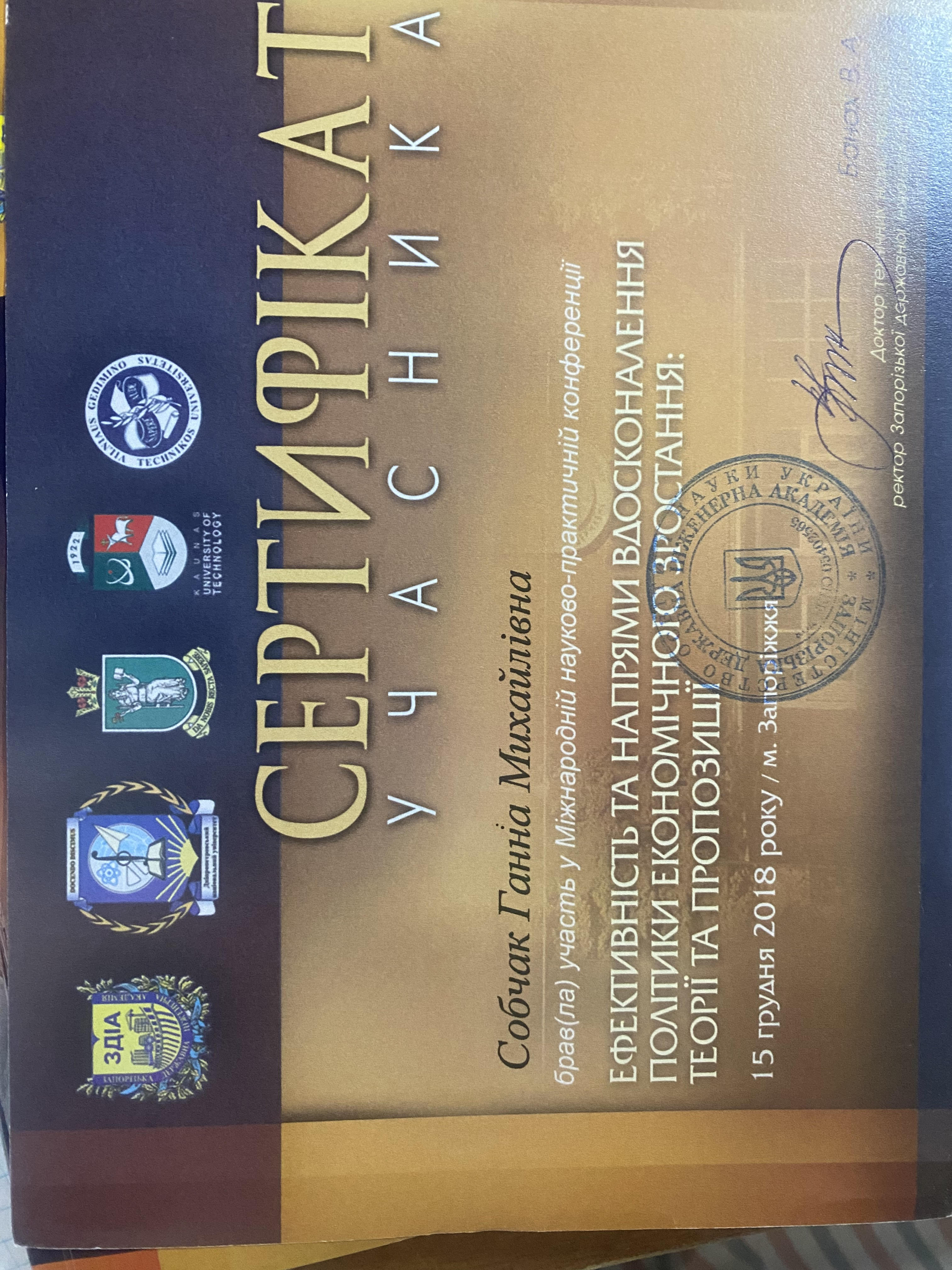 | ID | Назва | Тема доповіді | Місце проведення | Документ, що засвідчує | Дата проведення |