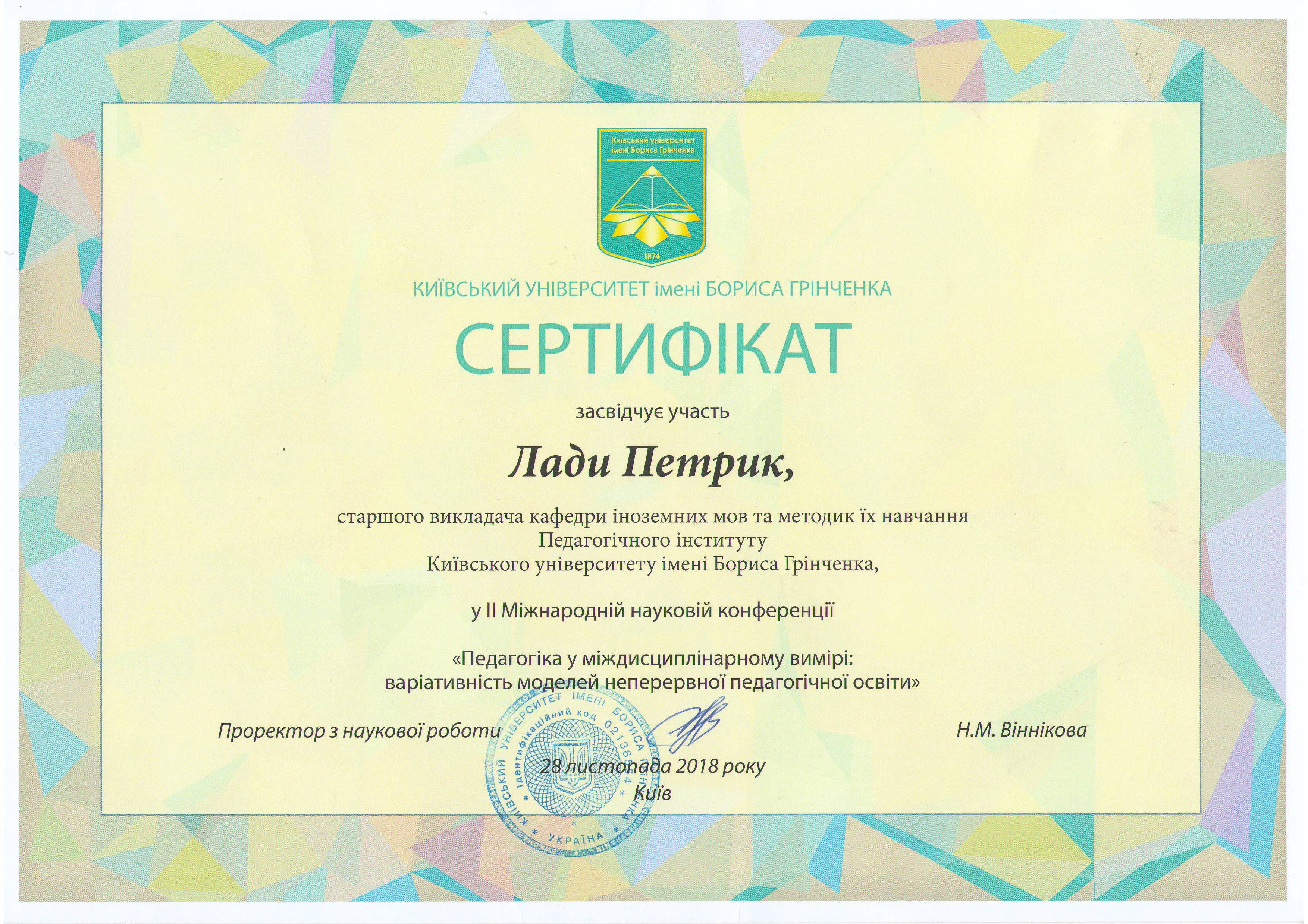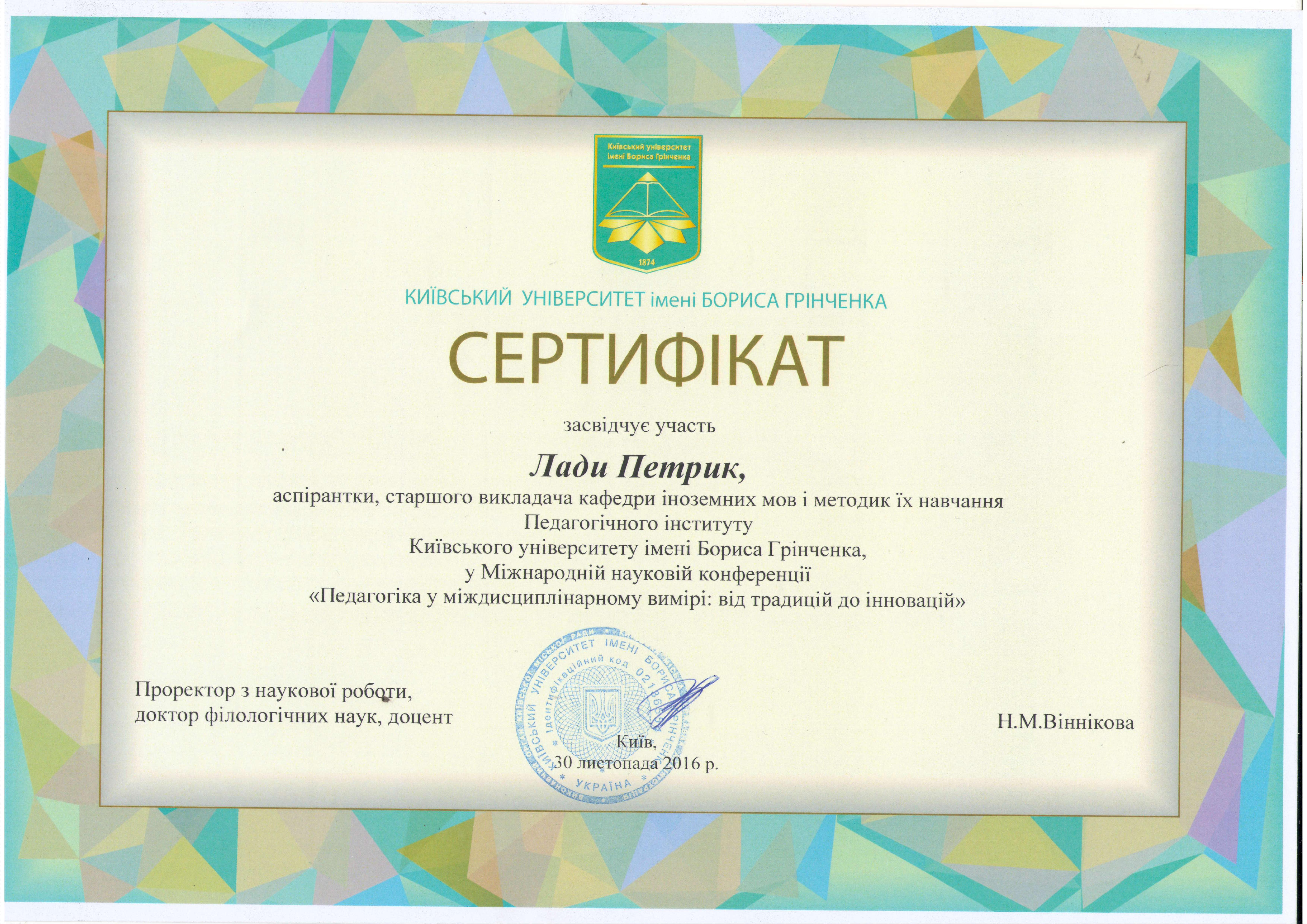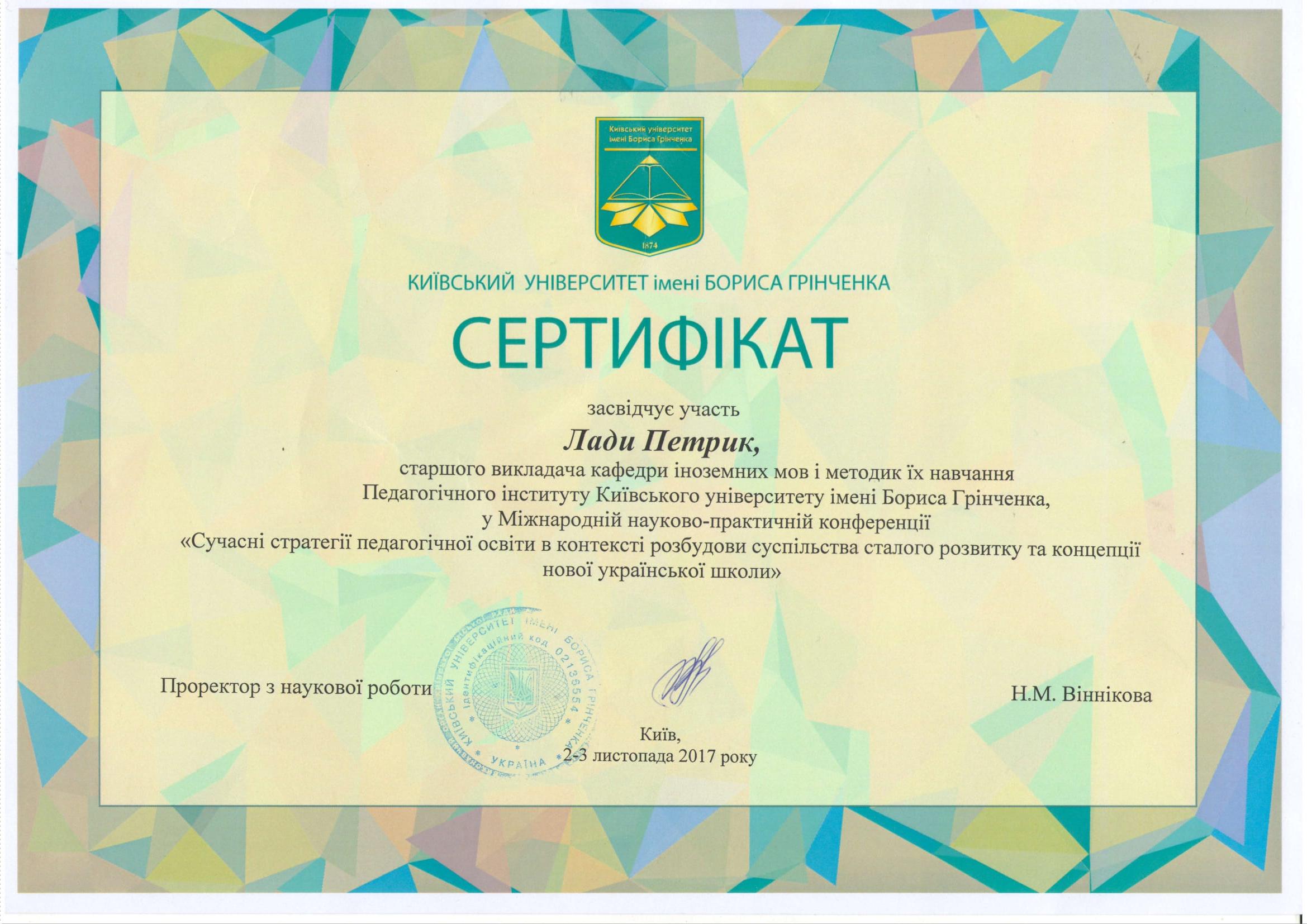 | 11162 | XІ Міжнародної науково-практичної конференції «Сучасна освіта: стратегії та технології навчання молоді і дорослих» | - | м.Переяслав |