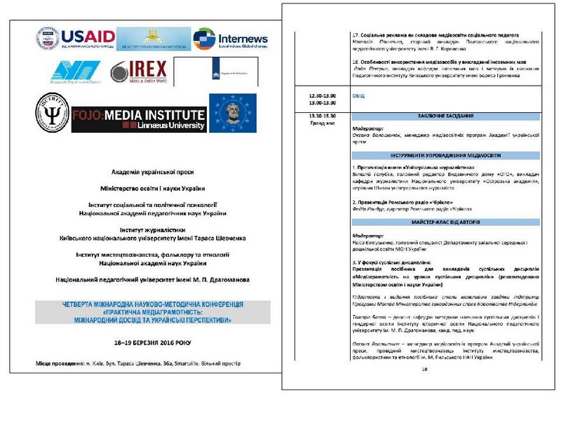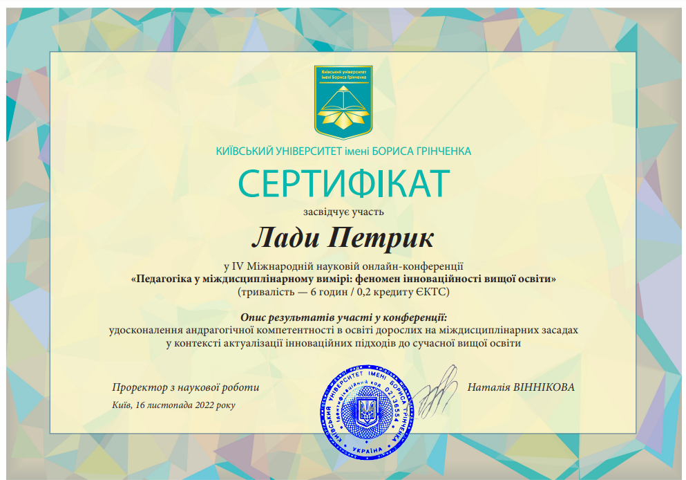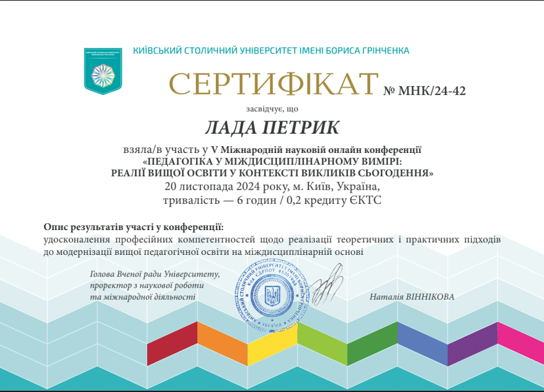 | 1213 | Педігогіка у міждисциплінарному виміірі: від традицій до інновацій | Медіаграмотність як навичка ХХІ століття | Київський університет імені Бориса Грінченка |