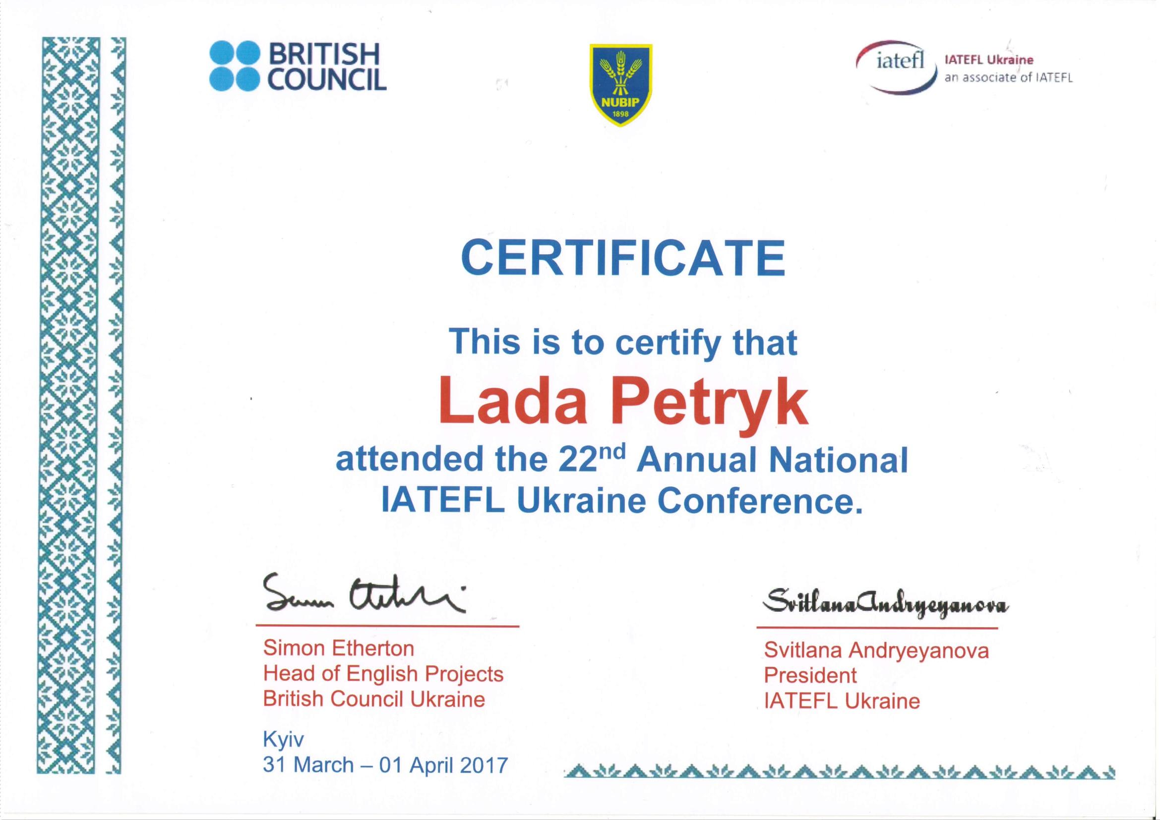 | 2505 | 22 Всеукраїнська конференція міжнародної асоціації вчителів англійської мови як іноземної (IATEFL) | - | м. Київ |