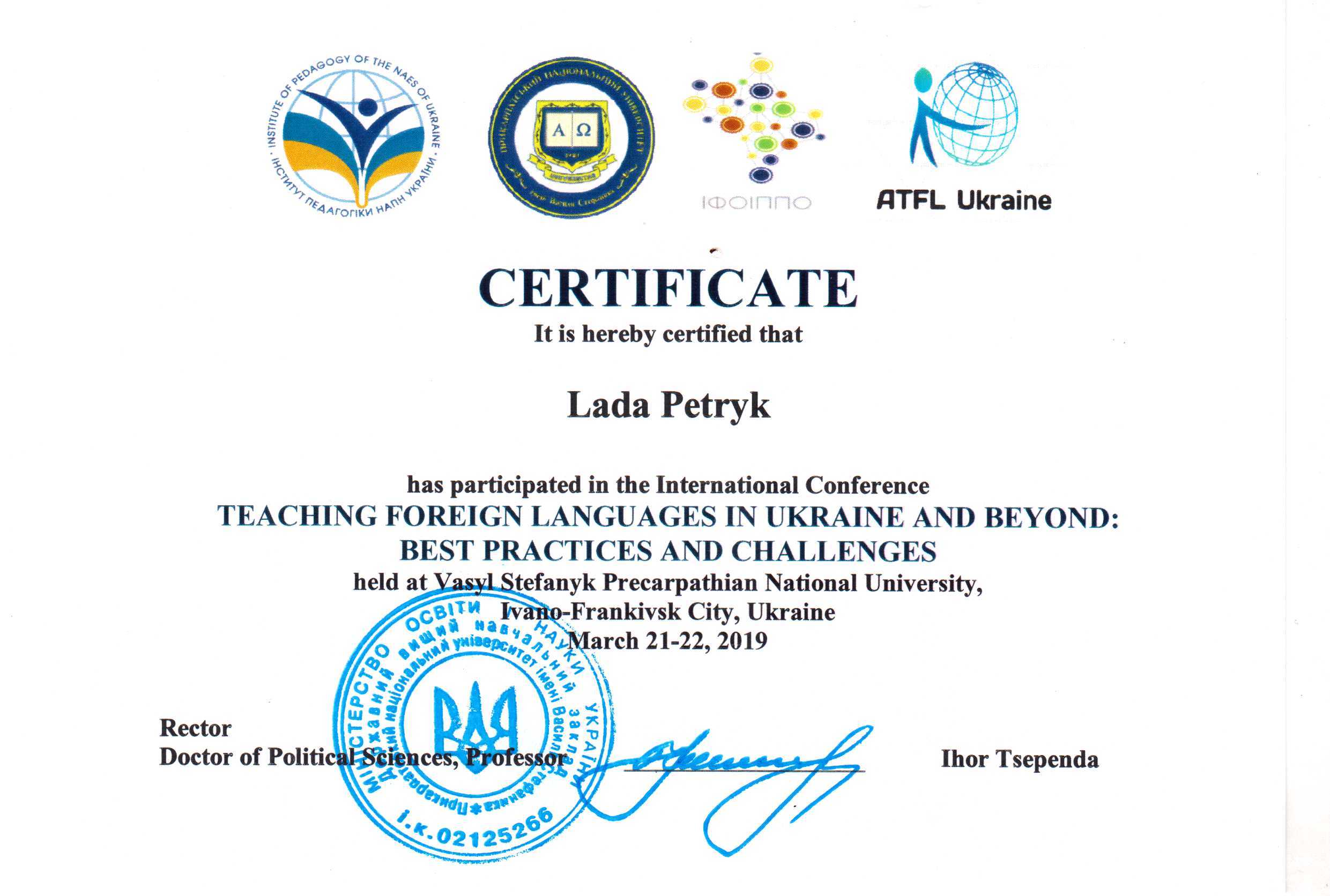 Член міжнародної організації IATEFL (International Association of Teachers of English as a Foreign Language) . Науково-дослідна та міжнародна діяльність