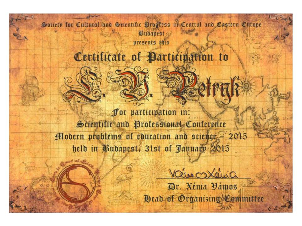 | 2157 | Педагогика и психология в эру увеличения потока информации 2017 | Цифрові зображення як медіа та навчальні засоби у навчанні іноземних мов майбутніх учителів початкової школи | м.Будапешт |