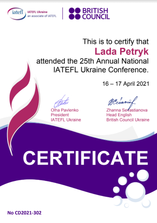 | 6747 | 25 Всеукраїнська конференція міжнародної асоціації вчителів англійської мови як іноземної (IATEFL) | - | м.Київ (online) |