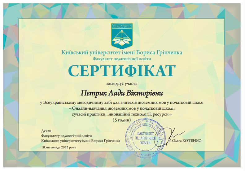 | 42329 | Організація HyFlex навчання іноземної мови: спеціальності 013 «Початкова освіта» та 012 «Дошкільна освіта» | |