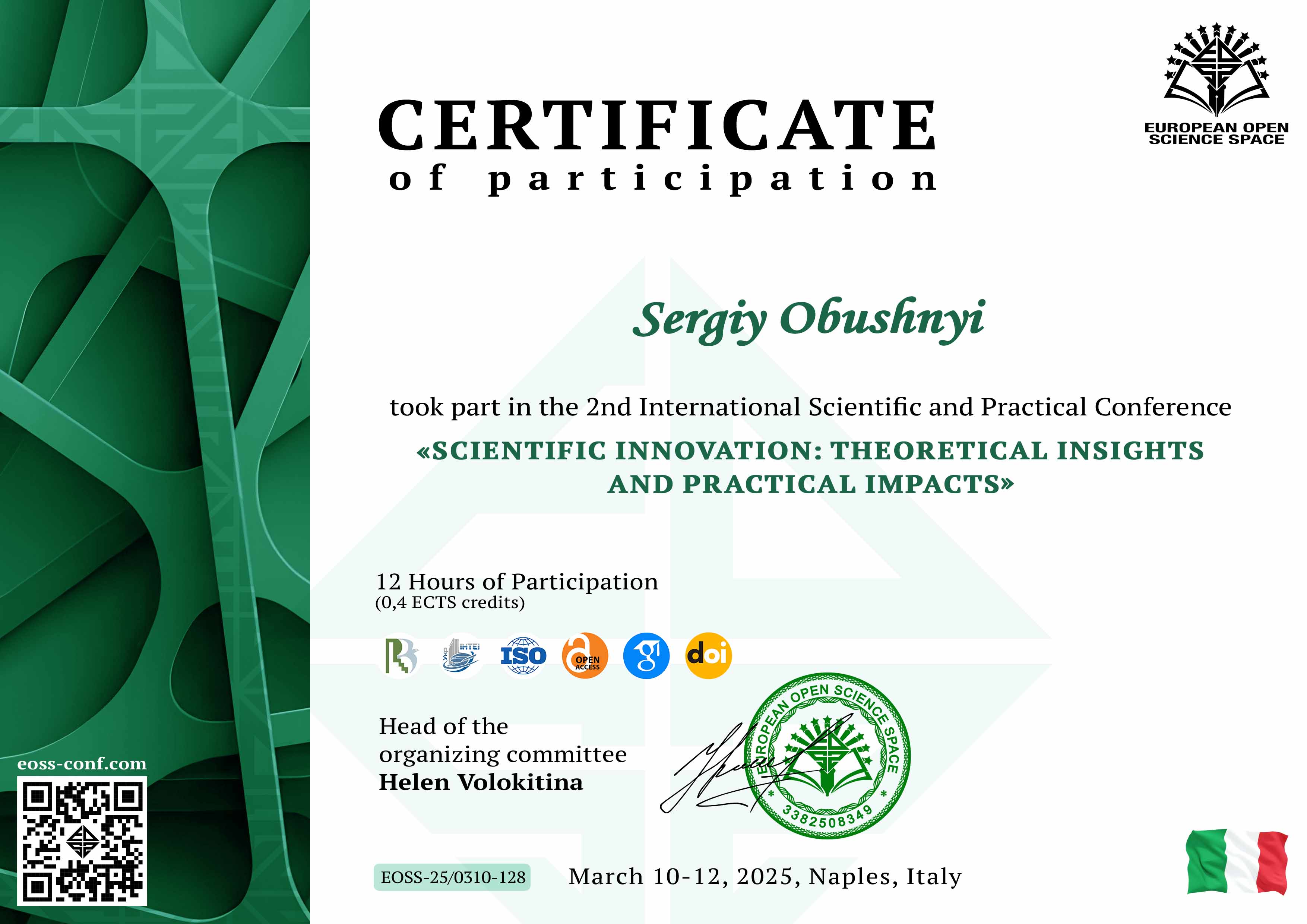 | 12293 | Scientific Innovation: Theoretical Insights and Practical Impacts | Financial Strategy Development of Logistics Enterprises in the Context of Economic Instability | Naples, Italy |