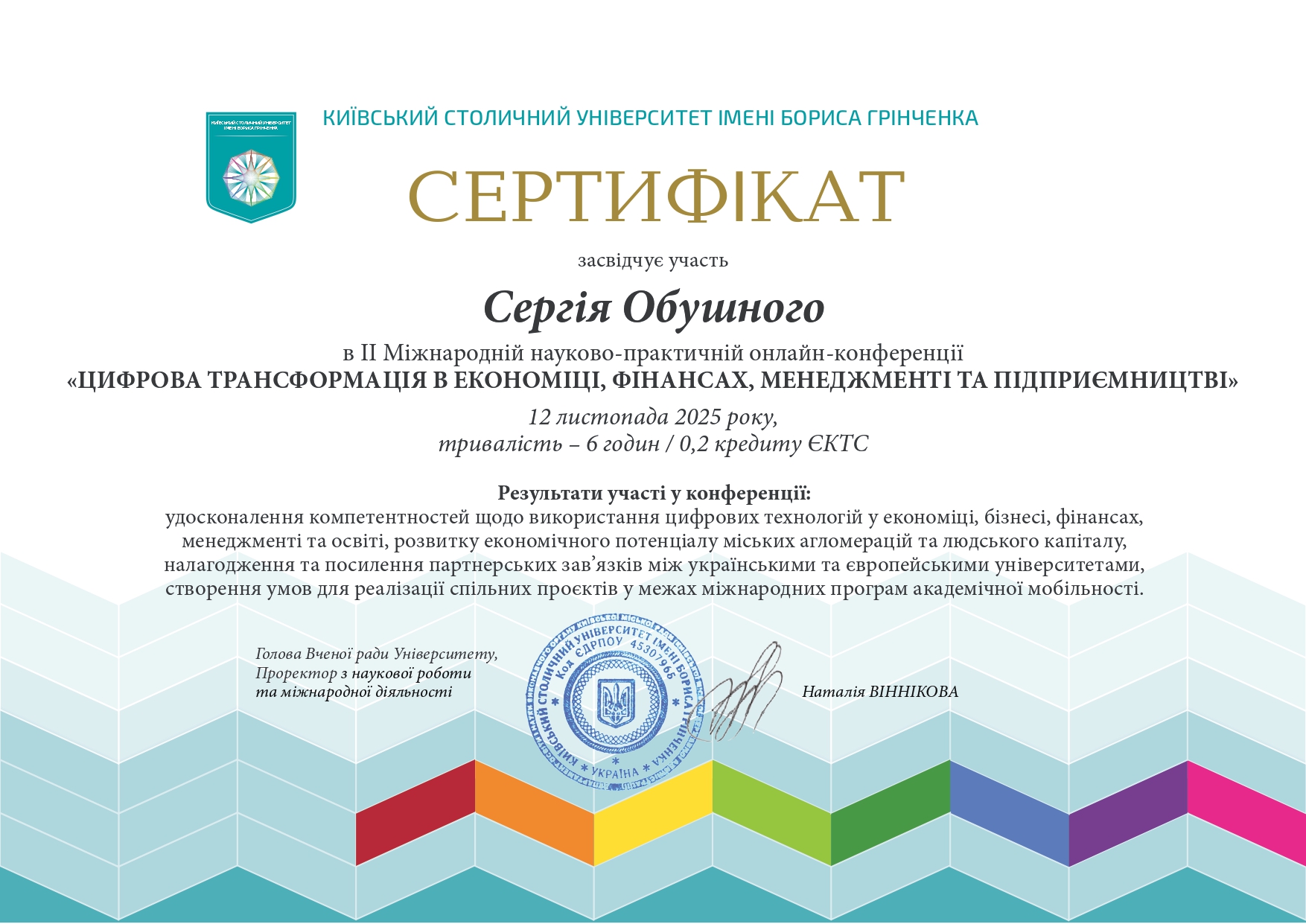 | 715 | V ювілейний конкурс «Словник Бориса Грінченка та сучасність»link | особиста участь | Київський університет імені Бориса Грінченка |