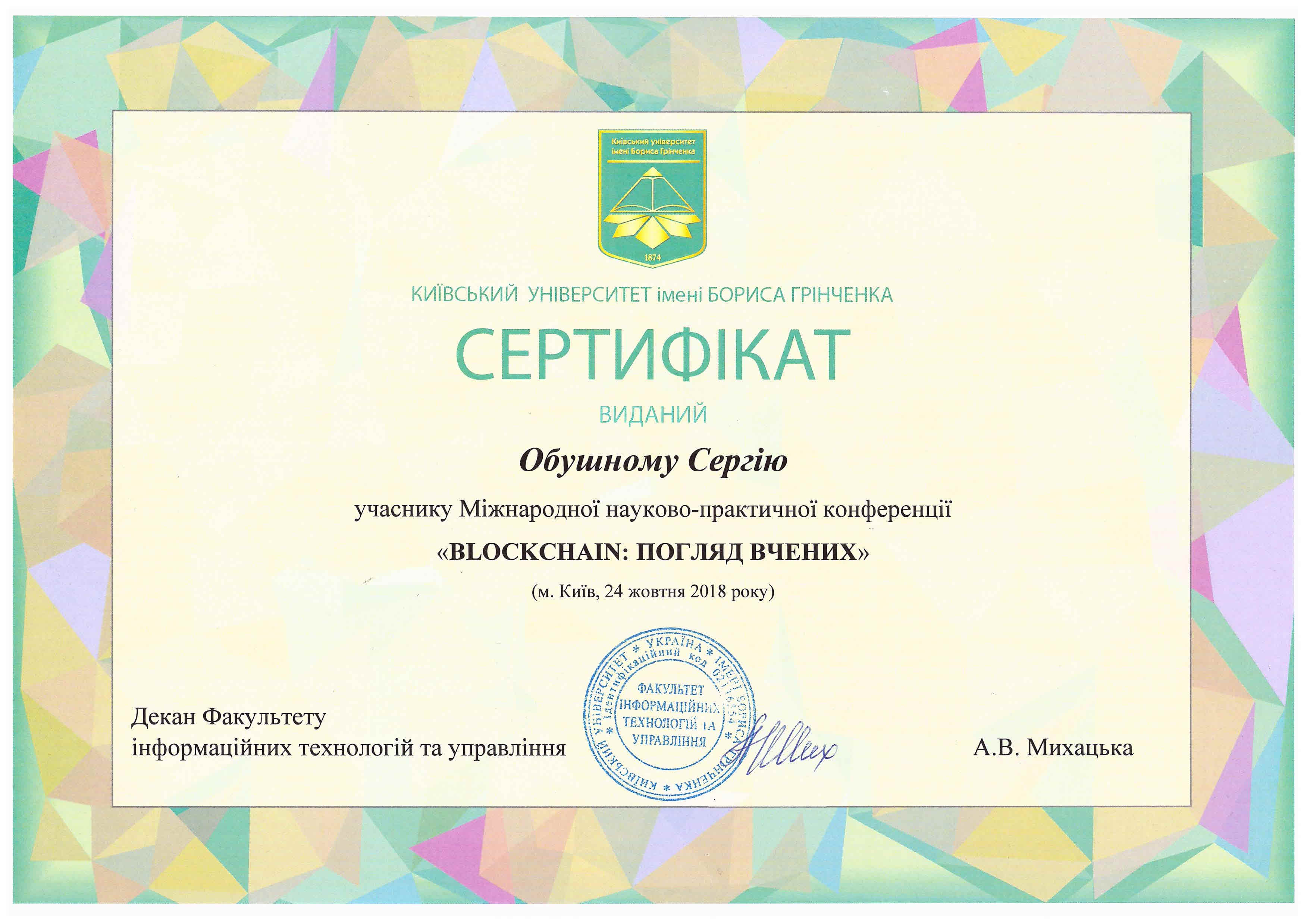 | 3432 | Міжнародна науково-практична конференція «Blockchain: погляд вчених» | Блокчейн та криптоекономіка | Київський університет імені Бориса Грінченка |