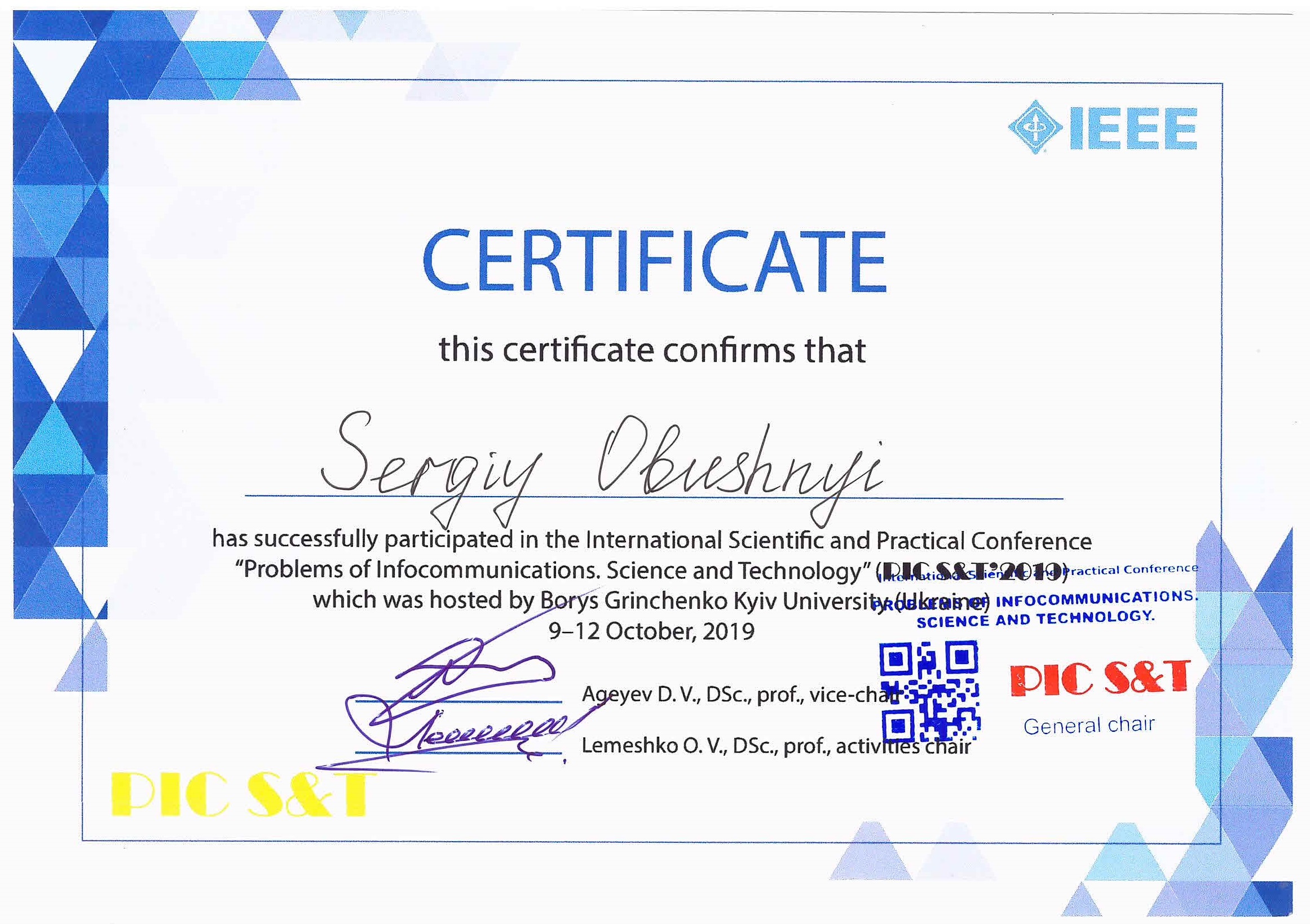 | 4381 | 2019 IEEE International Scientific-Practical Conference Problems of Infocommunications Science and Technology | Blockchain as a Transaction Protocol for Guaranteed Transfer of Values in Cluster Economic Systems with Digital Twins | Київський університет імені Бориса Грінченка |