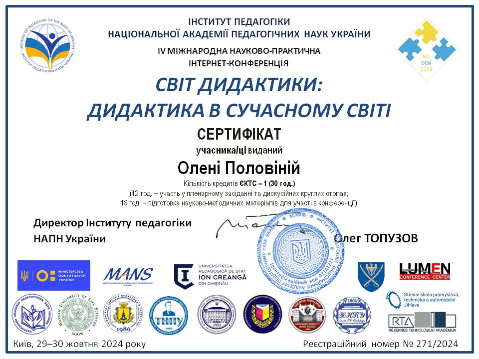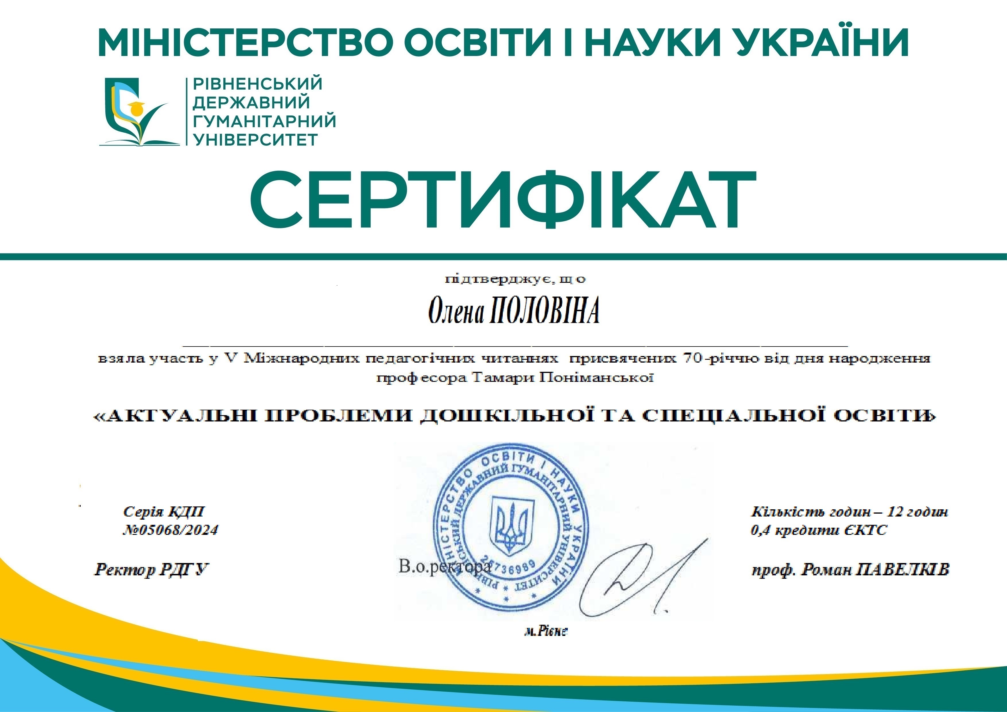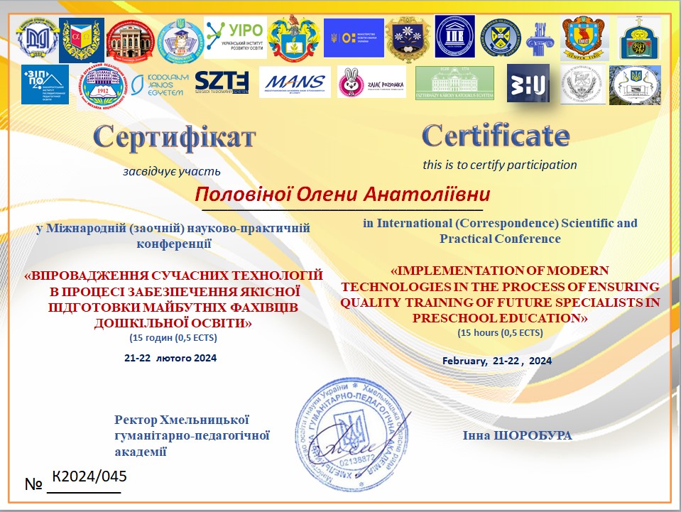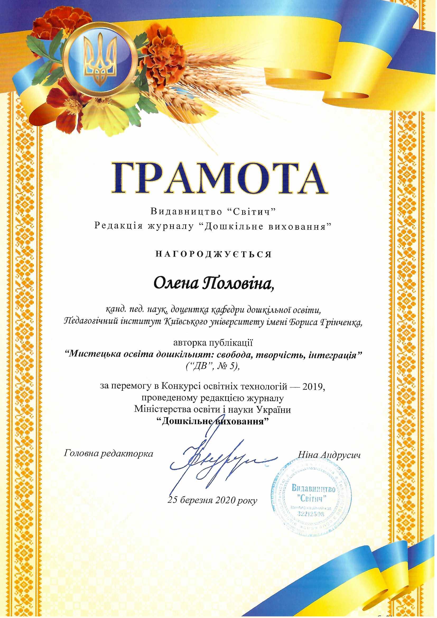 3. Переможець всеукраїнського Конкурсу освітніх технологій – 2023, журнал «Дошкільне виховання» № 3, березень 2024 р.