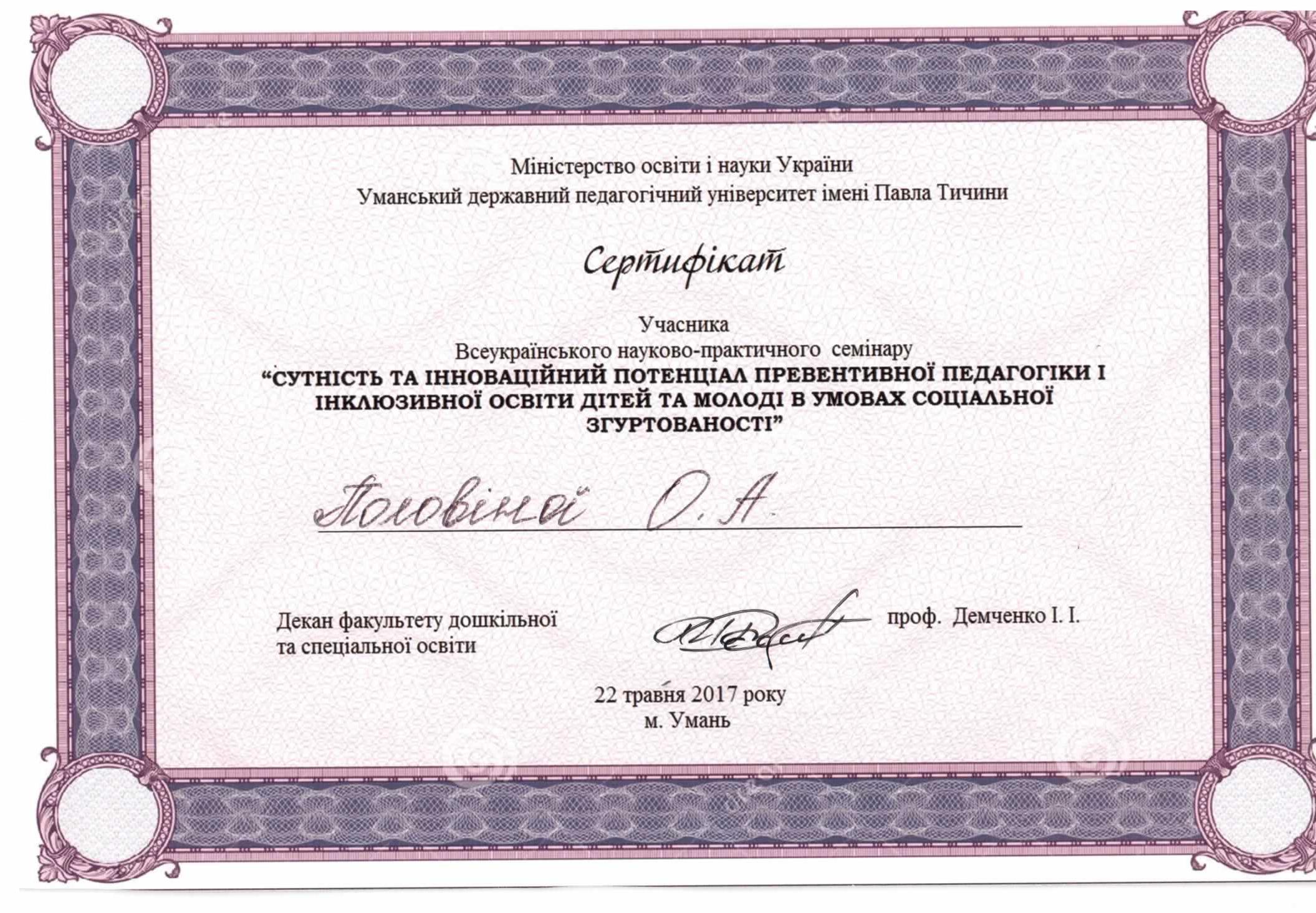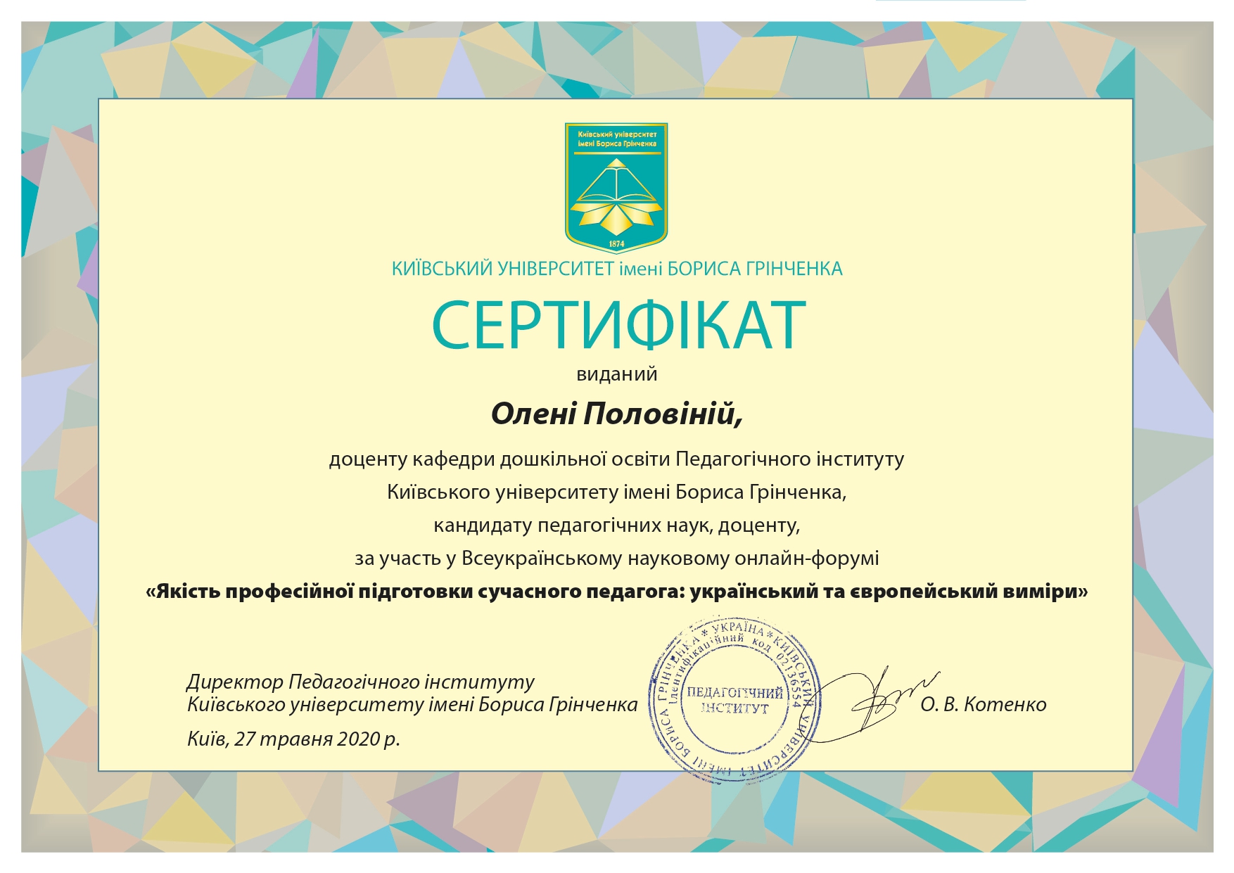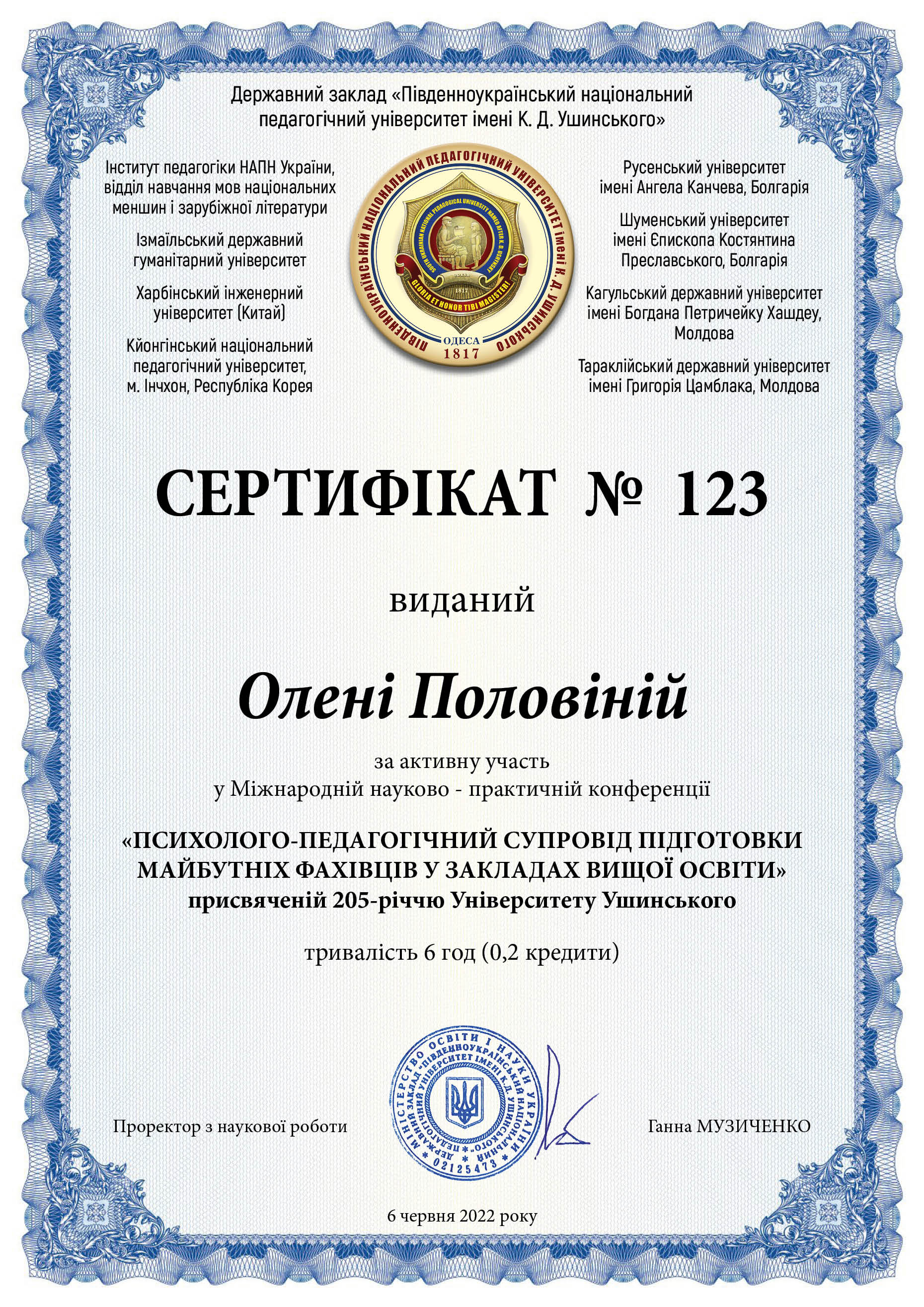 3. Виступ: Артосвіта майбутніх вихователів: особливості психолого-педагогічного супроводу) Всеукраїнська науково-практична інтернет-конференція з міжнародною участю «Дошкільна освіта у сучасному соціокультурному просторі», Полтава,