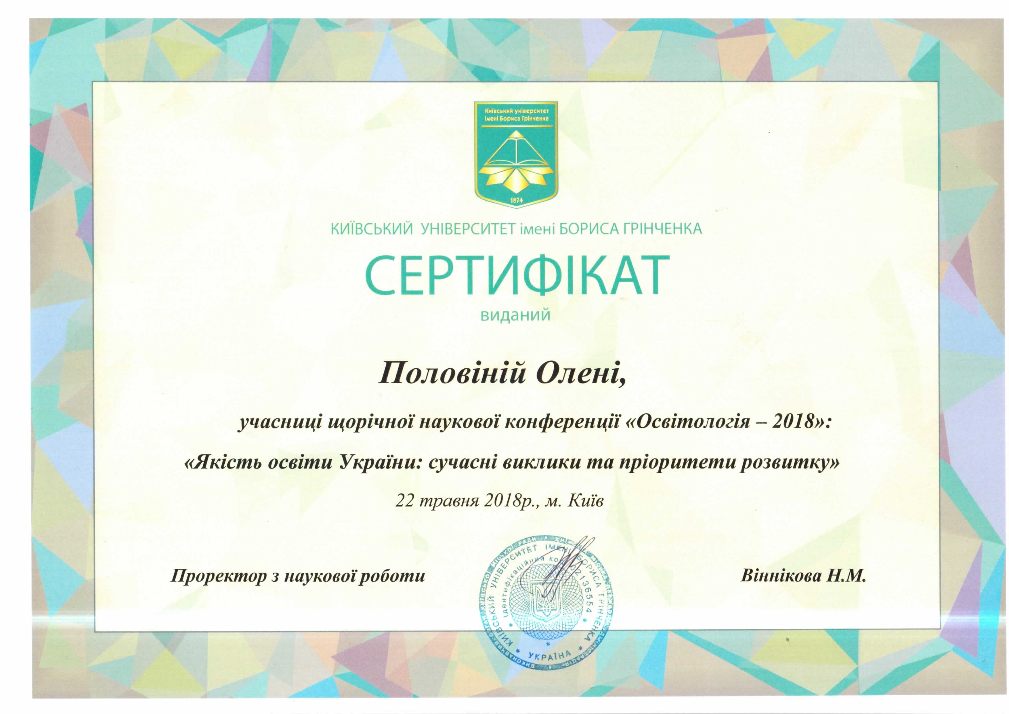 8. Всеукраїнська науково-практична конференція «Інновації у професійній підготовці педагога в умовах євроінтеграції освітнього процесу: погляд науковців і практиків», 15 травня 2019 року, м. Київ (модератор майстер-класу «Три кроки ефективної інтеграції в освітньому процесі: педагогічні лайфхаки»).