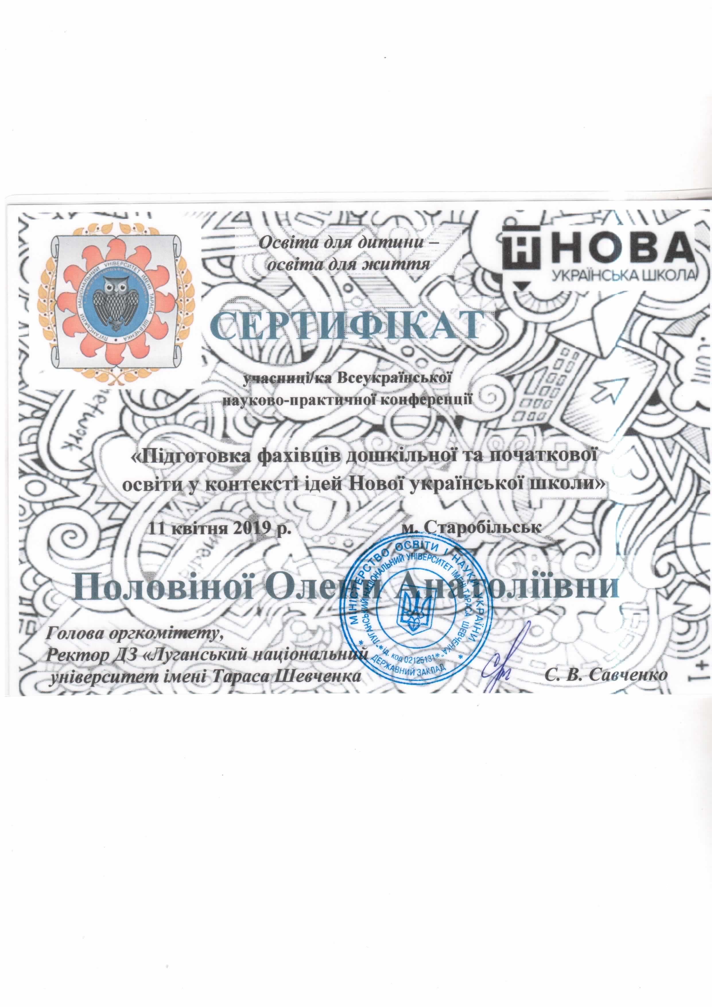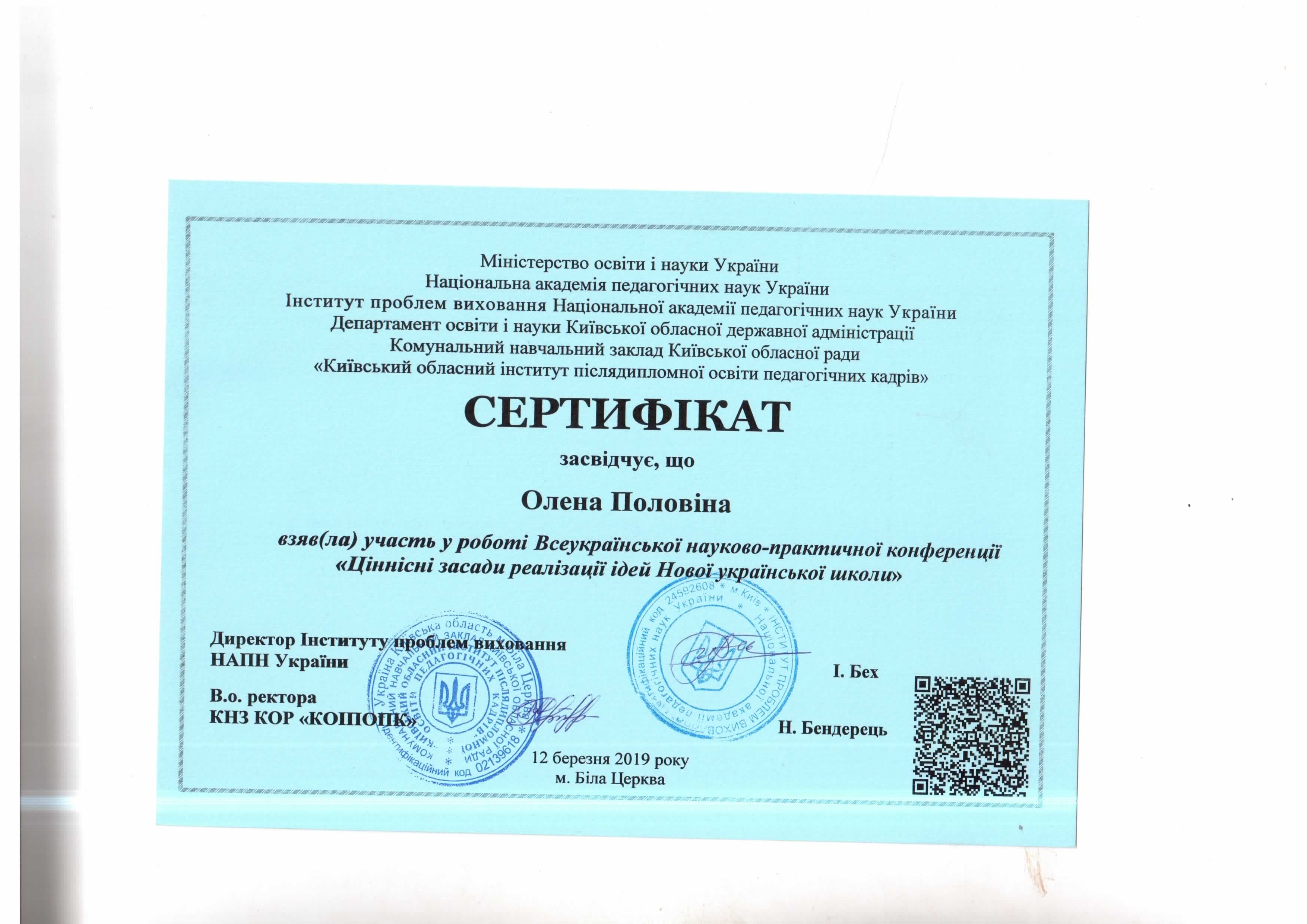 3. Всеукраїнська науково-практична конференція «Ціннісні засади реалізації ідей Нової української школи», 12 березня 2019 року, м. Біла Церква