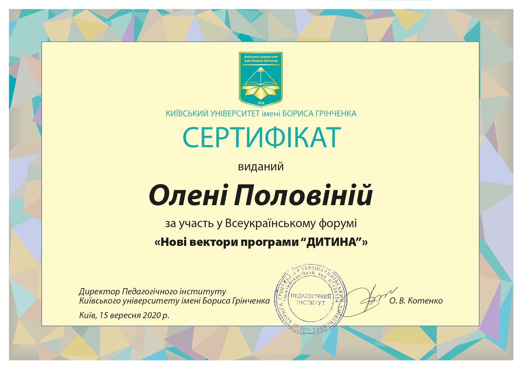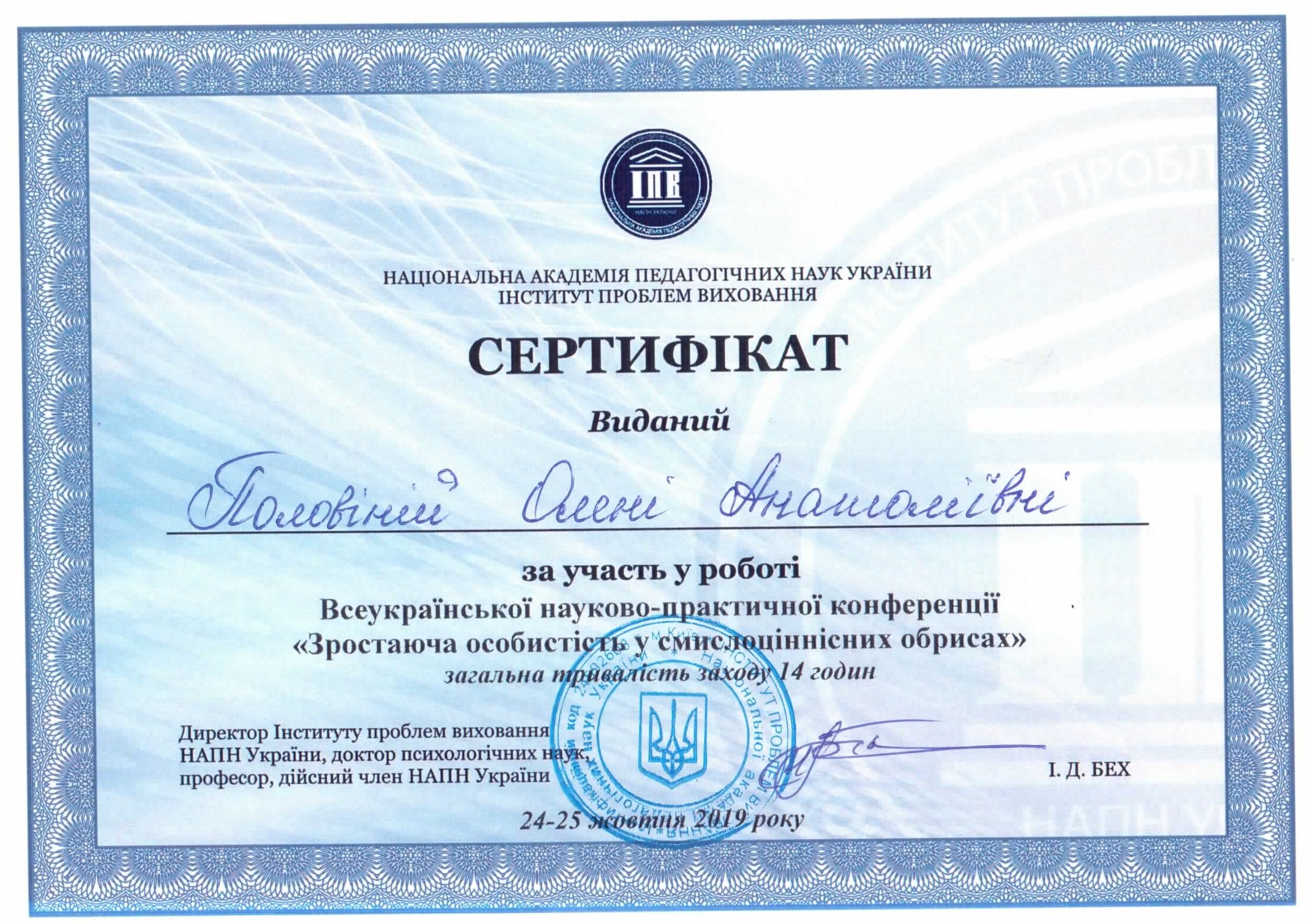 10. Участь у круглому столі «Виклики сьогодення: необхідність інноваційних змін у фаховій підготовці та перепідготовці вихователя закладу дошкільної освіти», 27 вересня 2019 року, м. Київ