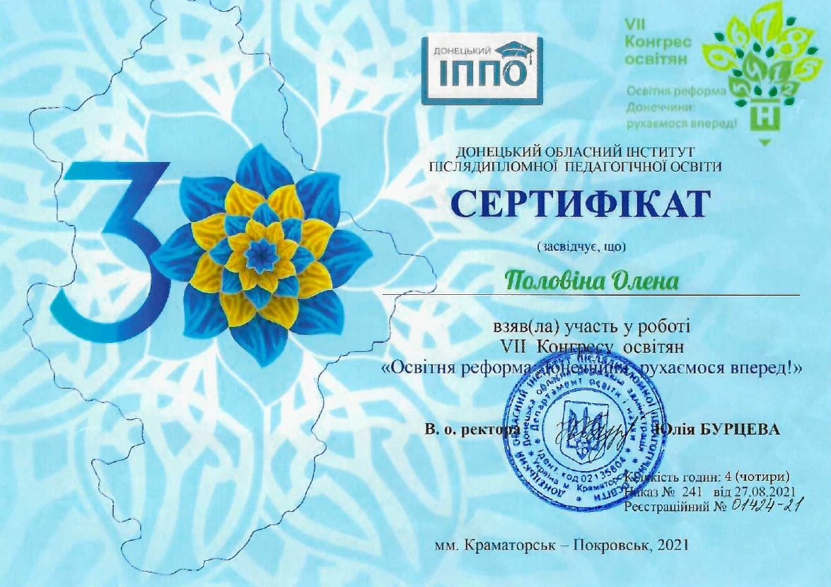 8. Виступ на VІІ конгресі освітян Донеччини «Освітня реформа Донеччини: рухаємось вперед!», 27 серпня 2021 р.