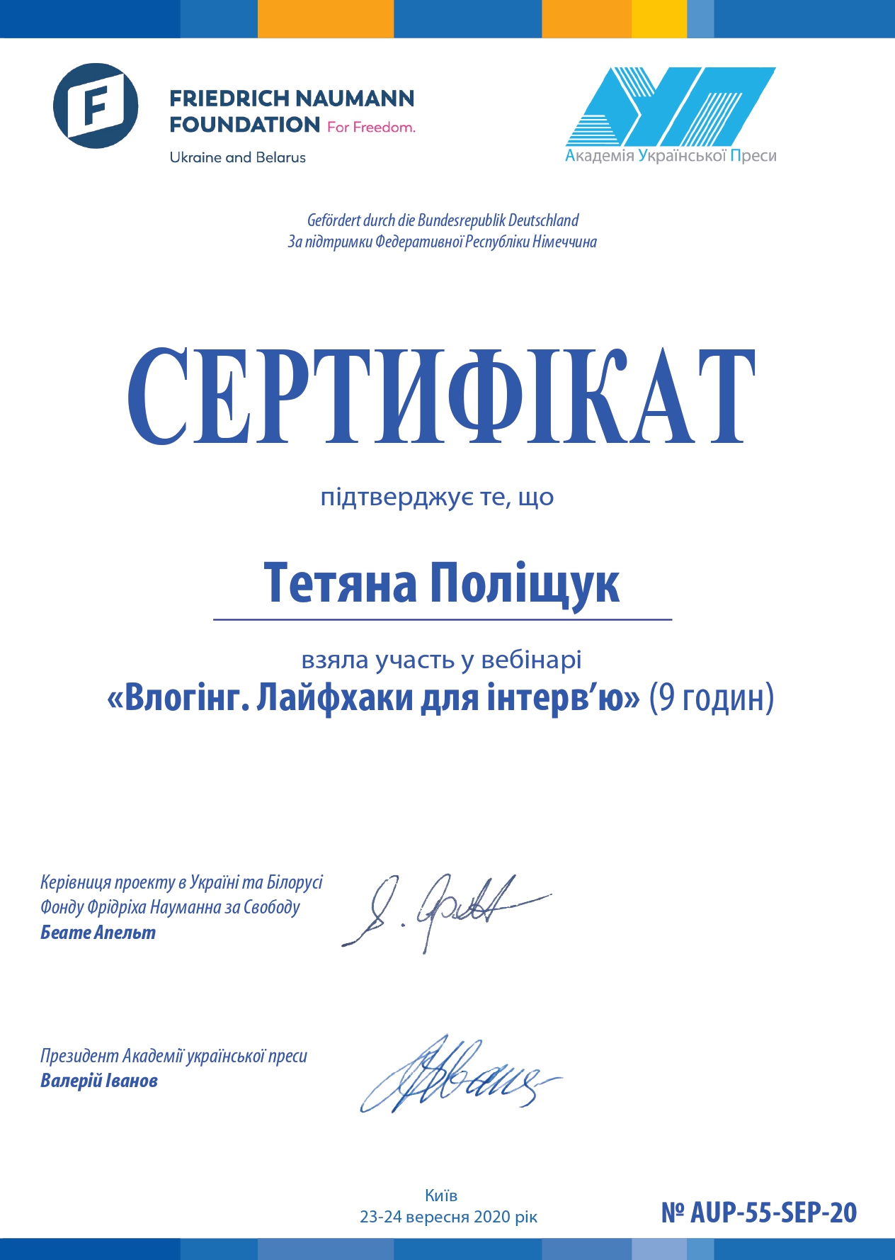 | 5848 | Вебінар від Фонду Фрідріха Науманна за Свободу та Академії української преси | "Влогінг. Лайфхаки для інтерв'ю" | Київ-Мюнхен |