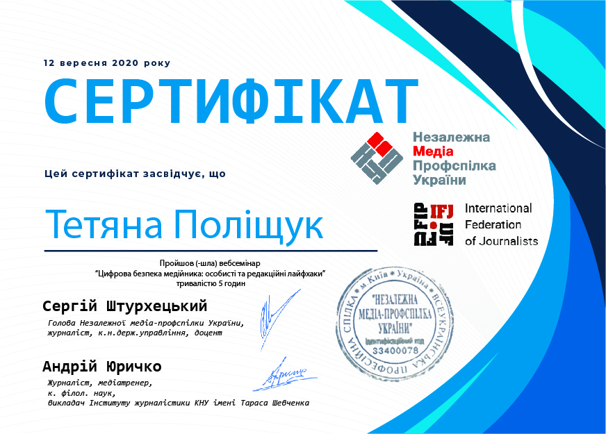 | 5850 | Тренінг від Незалежної медіа профспілки України | «Цифрова безпека для журналістів» | Київ, Україна |