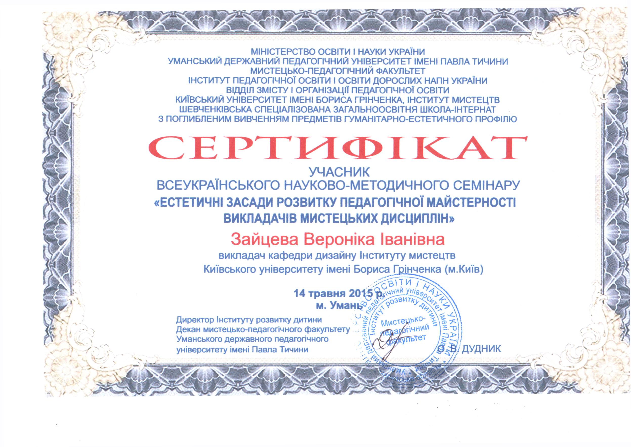 | 910 | Факультет образотворчого мистецтва і дизайну | Кафедра декоративного мистецтва і реставрації | 3.6 | 0 | 2025 | https://www.researchgate.net/profile/Veronika-Zajceva |