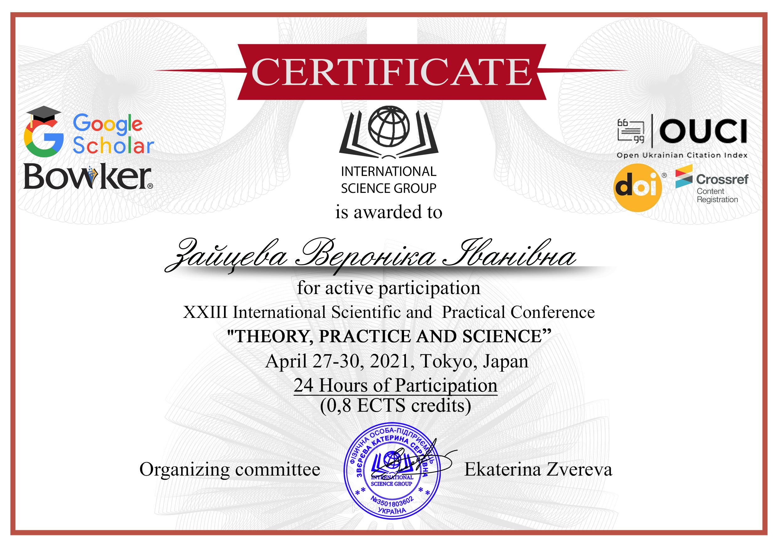 | 6791 | XXIII Міжнародна науковопрактична конференція «Theory, practice and science» Секція – культурологія | ВПЛИВ РОЗВИТКУ ДИЗАЙНУ В СУЧАСНІЙ УКРАЇНІ НА СОЦІОКУЛЬТУРНІ ТРАНСФОРМАЦІЇ СУСПІЛЬСТВА | Токіо, Японія |