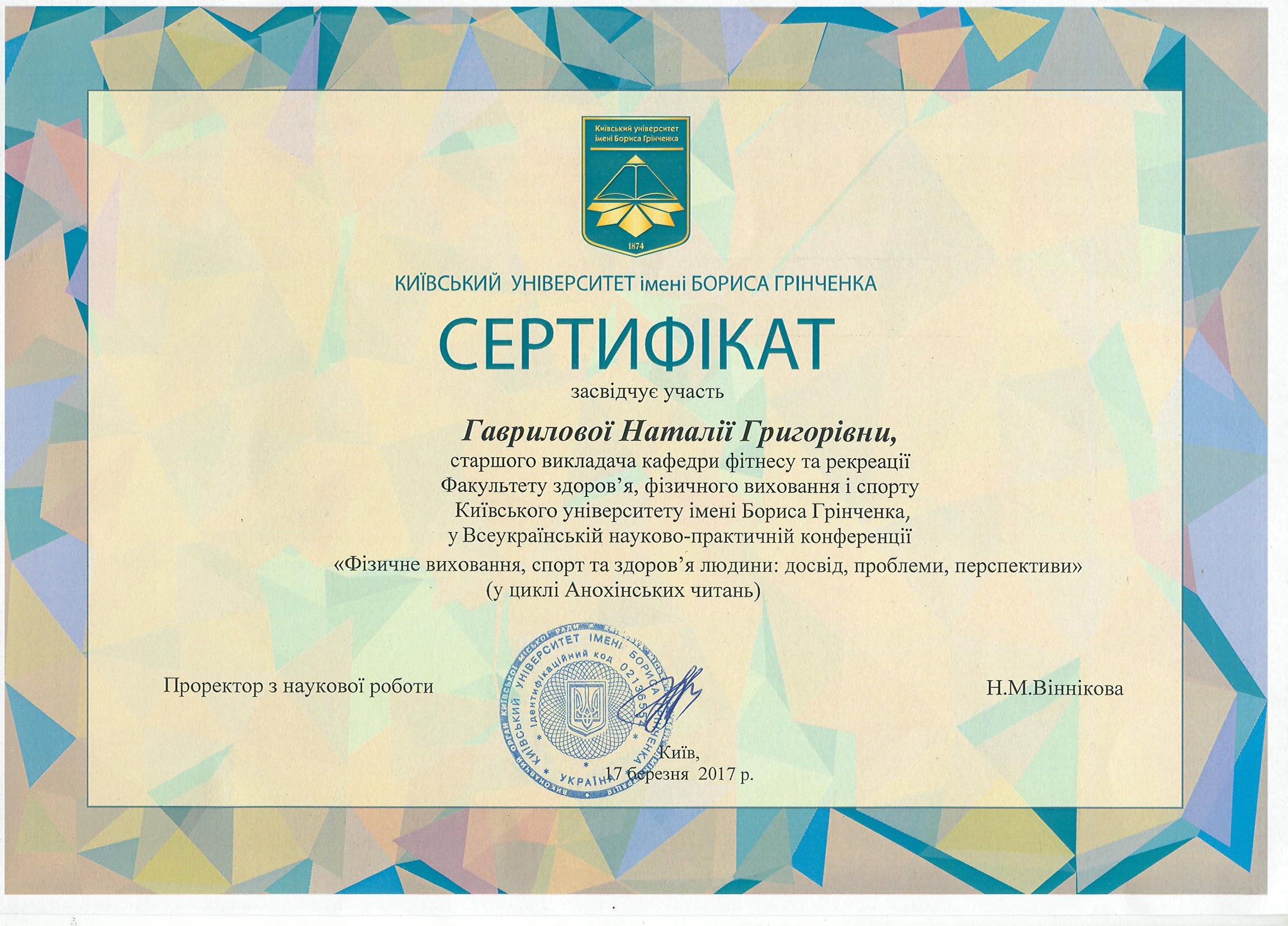 | 1786 | Всеукраїнськанауково-практична конференція "Фізичневиховання, спорт та здоров"ялюдини: досвід, проблеми, перспективи" (у цикліАнохінських читань) | ОЦІНКА РОЗВИТКУ КООРДИНАЦІЙНИХ ЗДІБНОСТЕЙ У СТУДЕНТІВ ВНЗ | м.Київ, Київський університет імені Бориса Грінченка |