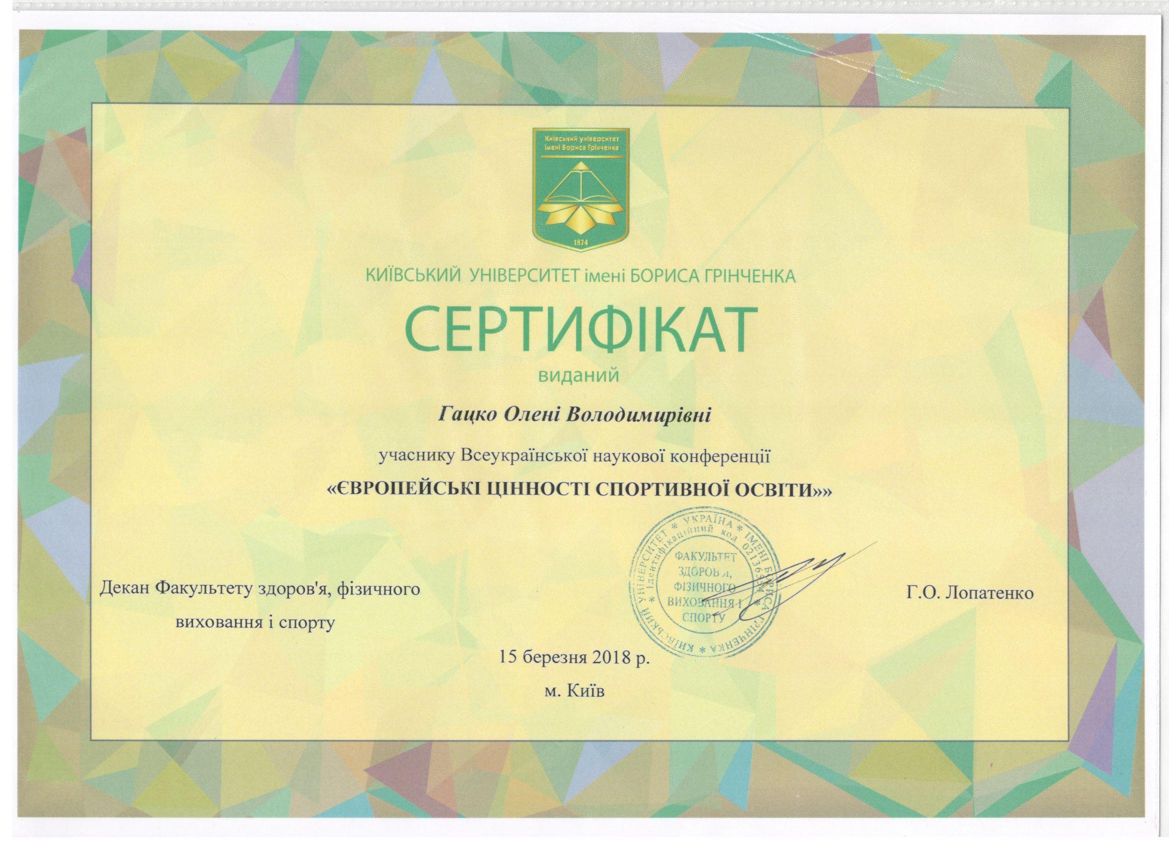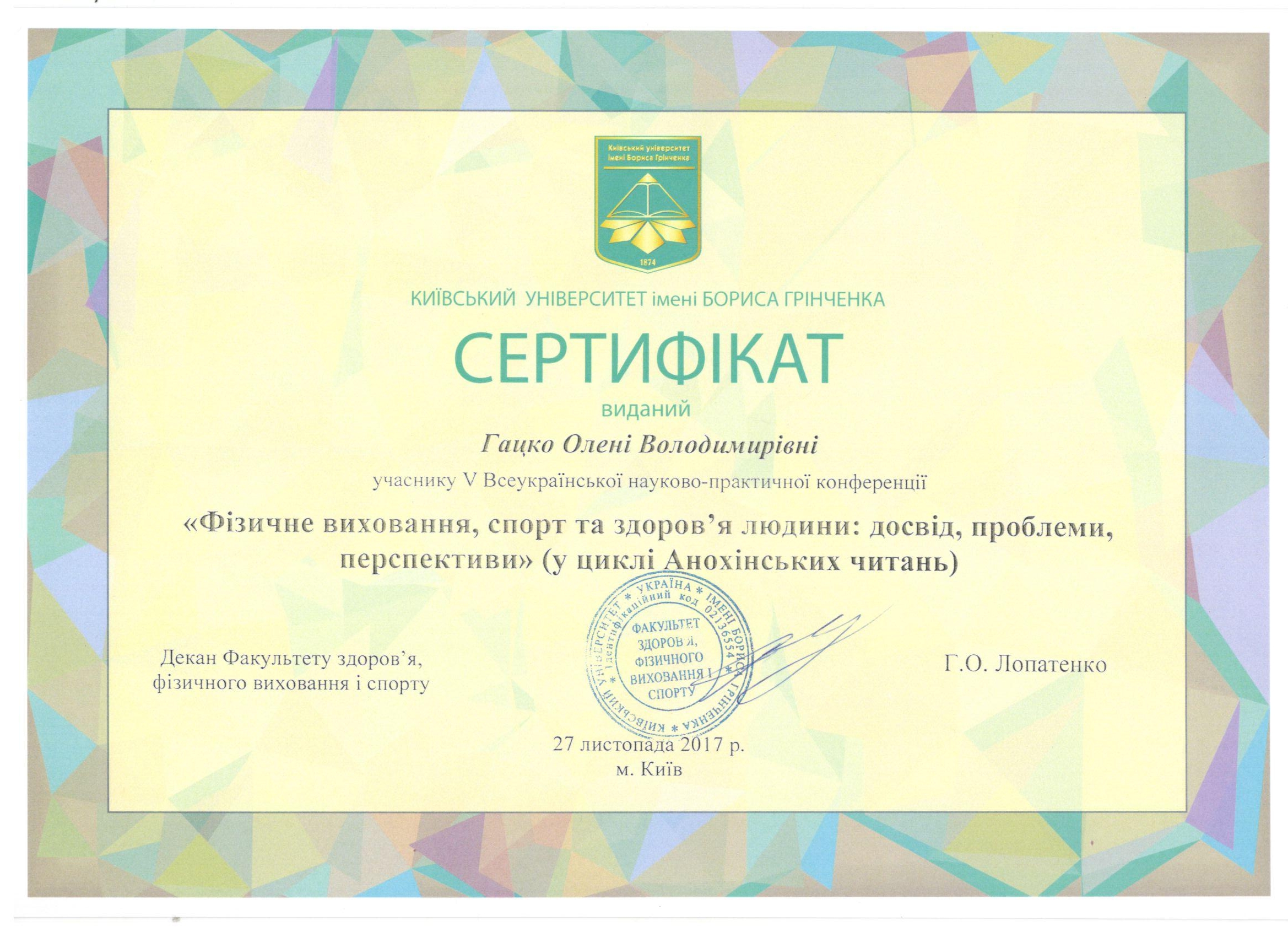 | 6292 | VІІІ Всеукраїнська науково-практична конференція "Фізичне виховання, спорт та здоровя людини: досвід, проблеми, перспективи" (у циклі Анохінських читань) | без доповіді | Київ, КУ імені Бориса Грінченка |