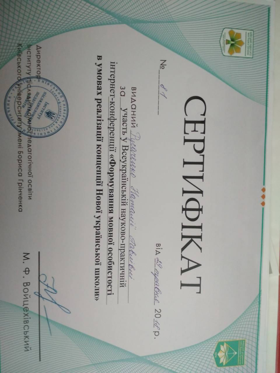 | 3882 | Формування мовної особистості в умовах реалізації концепції нової української школи | Мовна особистість І. Некрашевича на тлі староукраїнської доби кінця XVI –XVIIІ ст. | Київ |