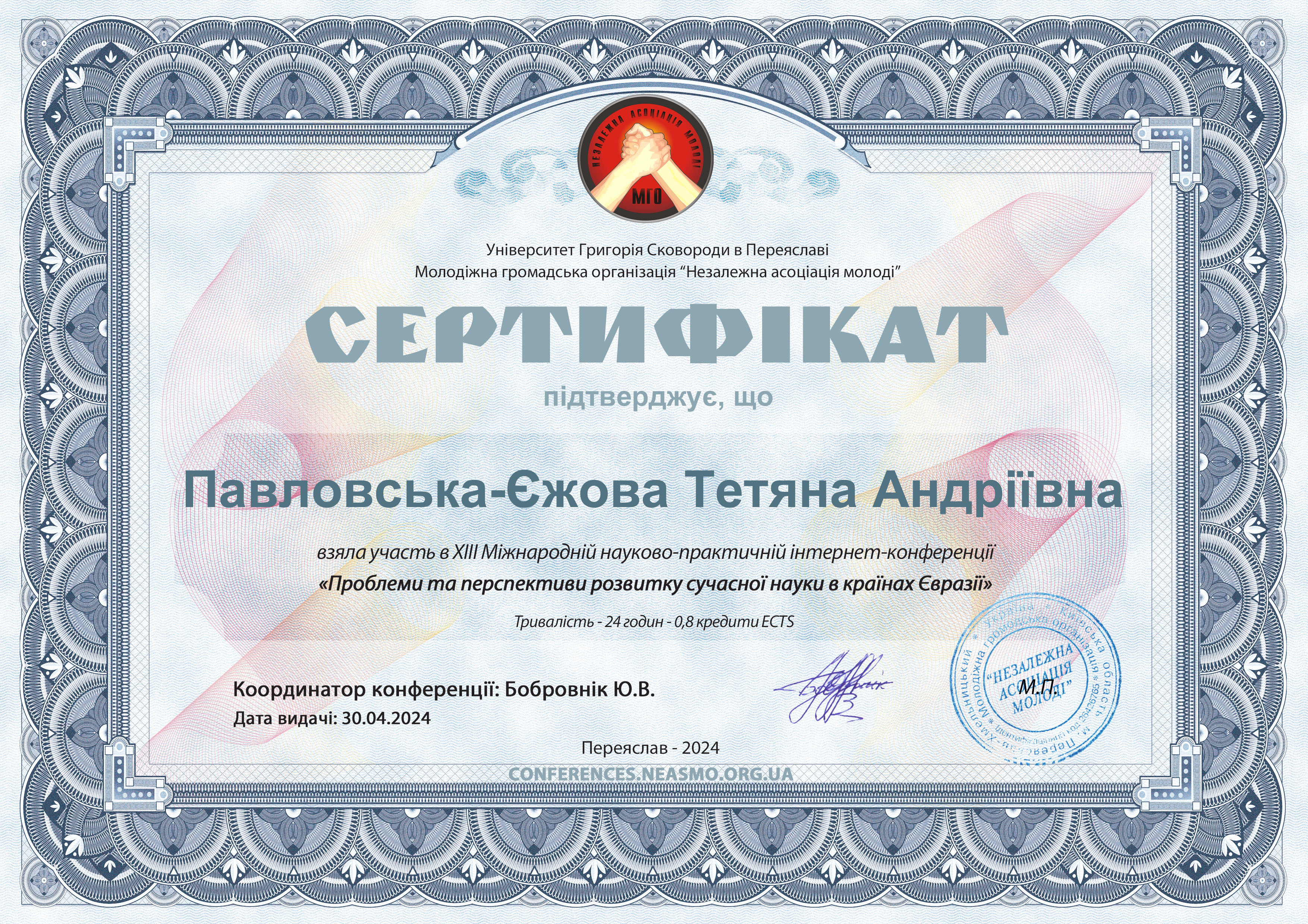 | 8641 | УКРАЇНА НА ШЛЯХУ ВІДНОВЛЕННЯ: ЗАВДАННЯ НАУКИ І ОСВІТИ В ЄВРОПЕЇЗАЦІЇ ДЕРЖАВИ | Інший модуль | Павловська-Єжова Т.А..pdf | 19.05.2023 00:00 |