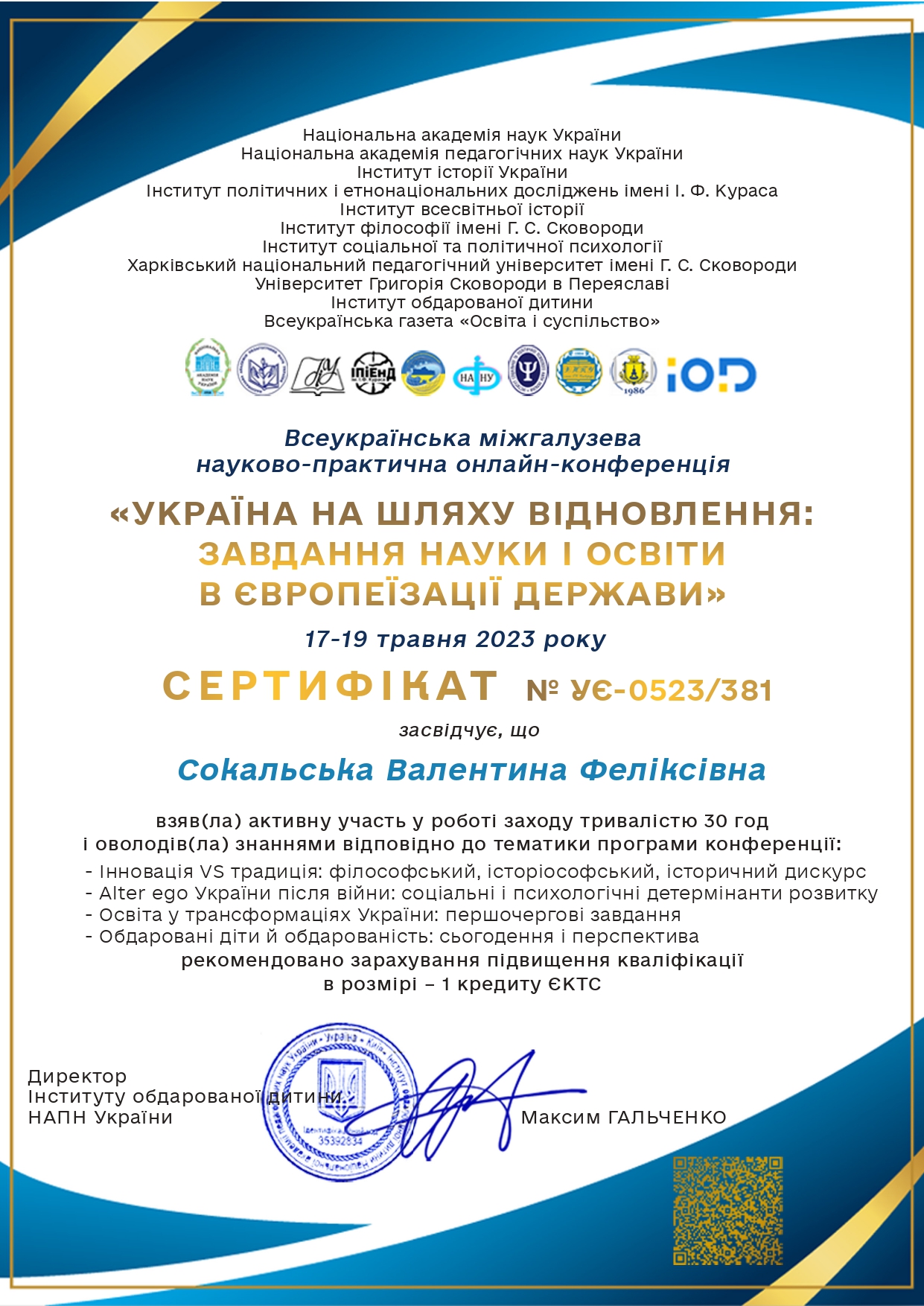 8356 Україна на шляху відновлення: завдання науки і освіти в європеїзації держави Інший модуль document 19.05.2023 00:00