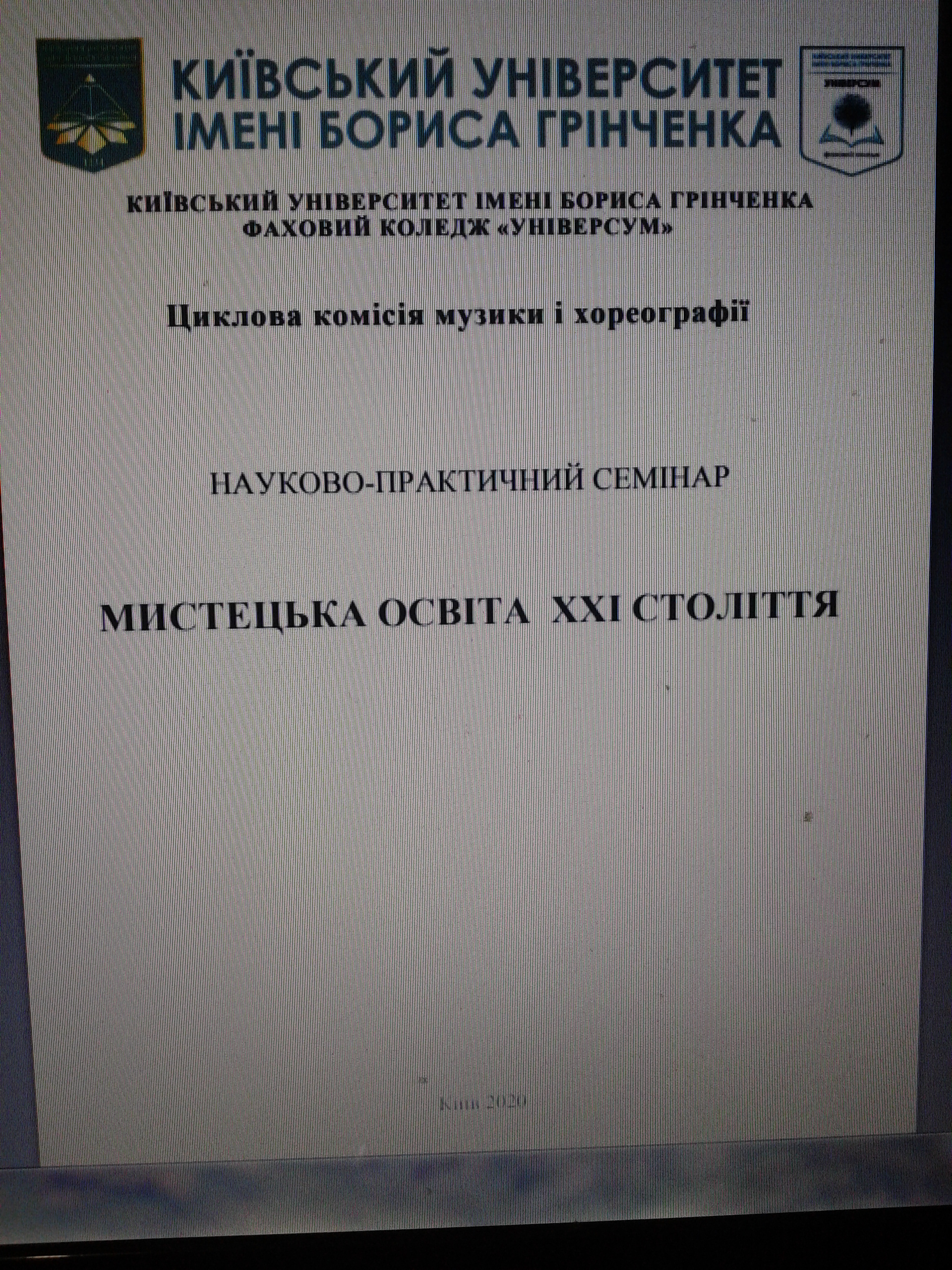 | 6420 | Науково-практичний семінар МИСТЕЦЬКА ОСВІТА XXI СТОЛІТТЯ | Застосування методів ( технологій) для формування вокально-хорових навичок у дітей» | КИЇВСЬКИЙ УНІВЕРСИТЕТ ІМЕНІ БОРИСА ГРІНЧЕНКА ФАХОВИЙ КОЛЕДЖ «УНІВЕРСУМ» |