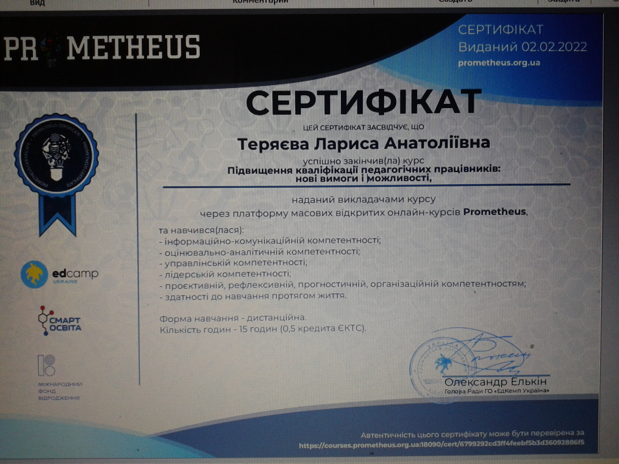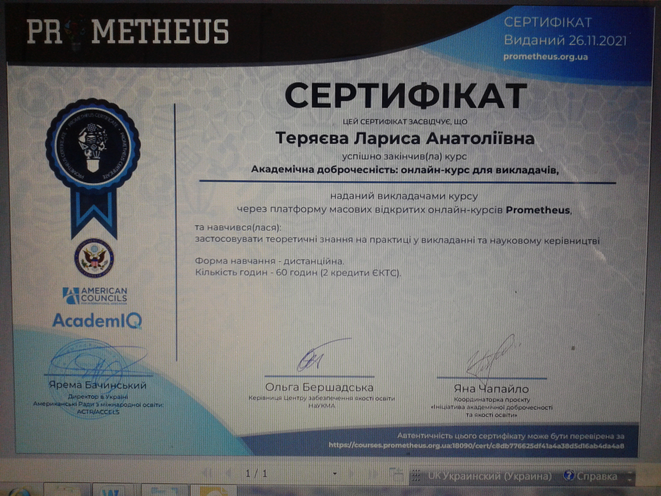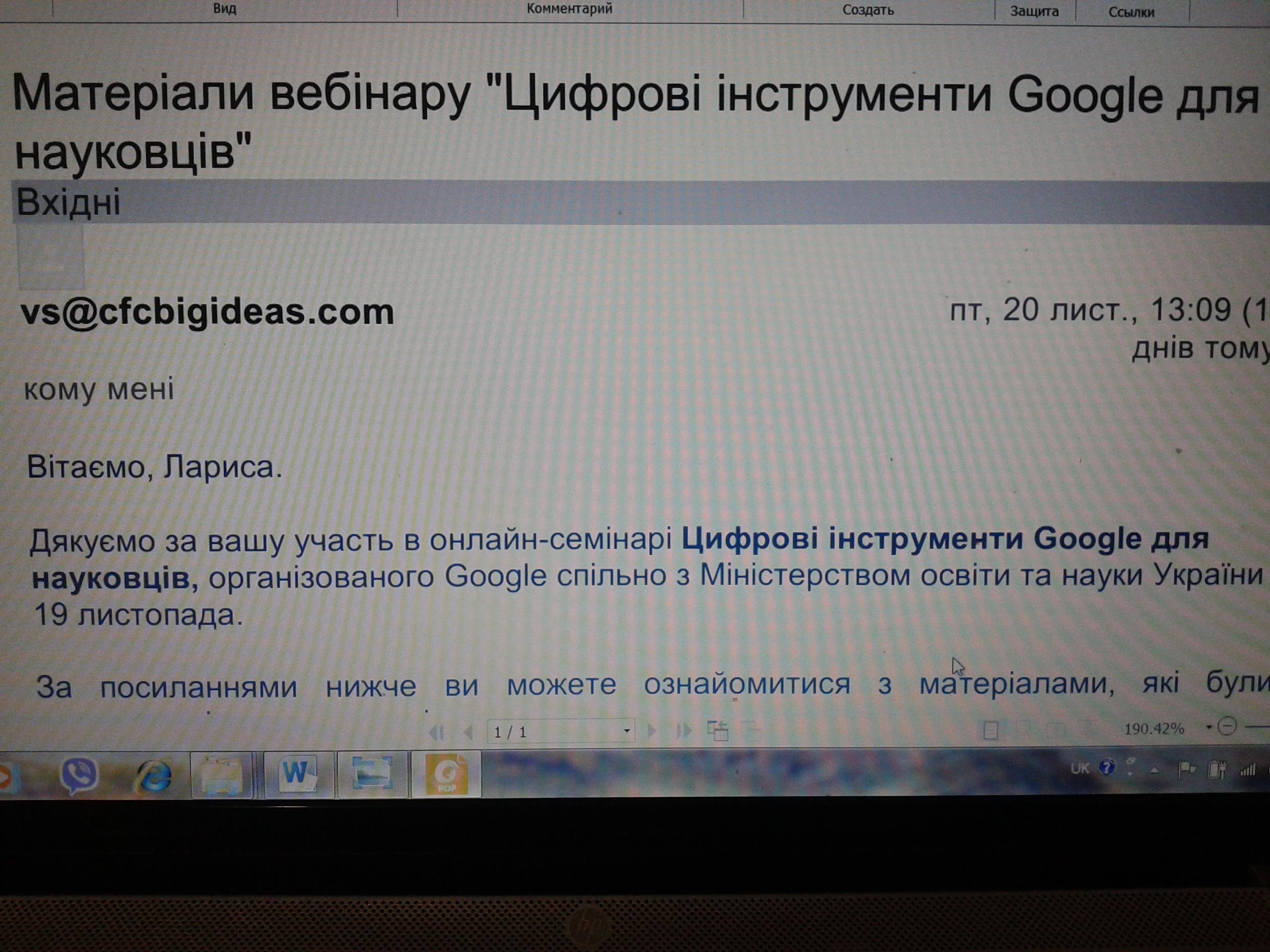 | 6422 | Всеукраїнський онлайн-семінар «Цифрові інструменти Google для науковців | слухач | за підтримки Міністерства освіти і науки України та Компанії Google Україна. |