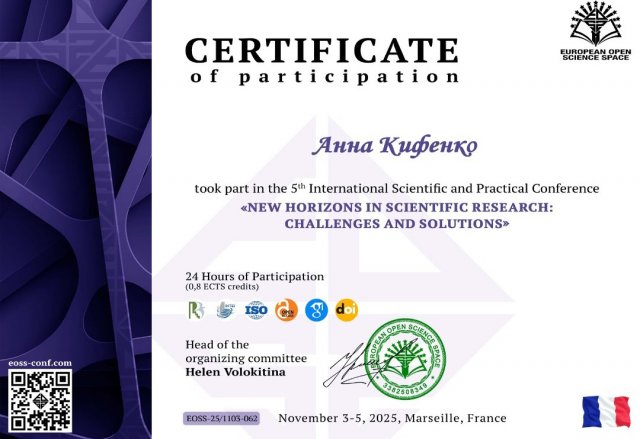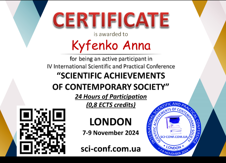 139 V Міжнародна науково-практична конференція «New Horizons in Scientific Research: Challenges and Solutions» Циганчук Юлія Геннадіївна, Клименко Марія Олександрівна 2025 Міжнародний рівень Покликання