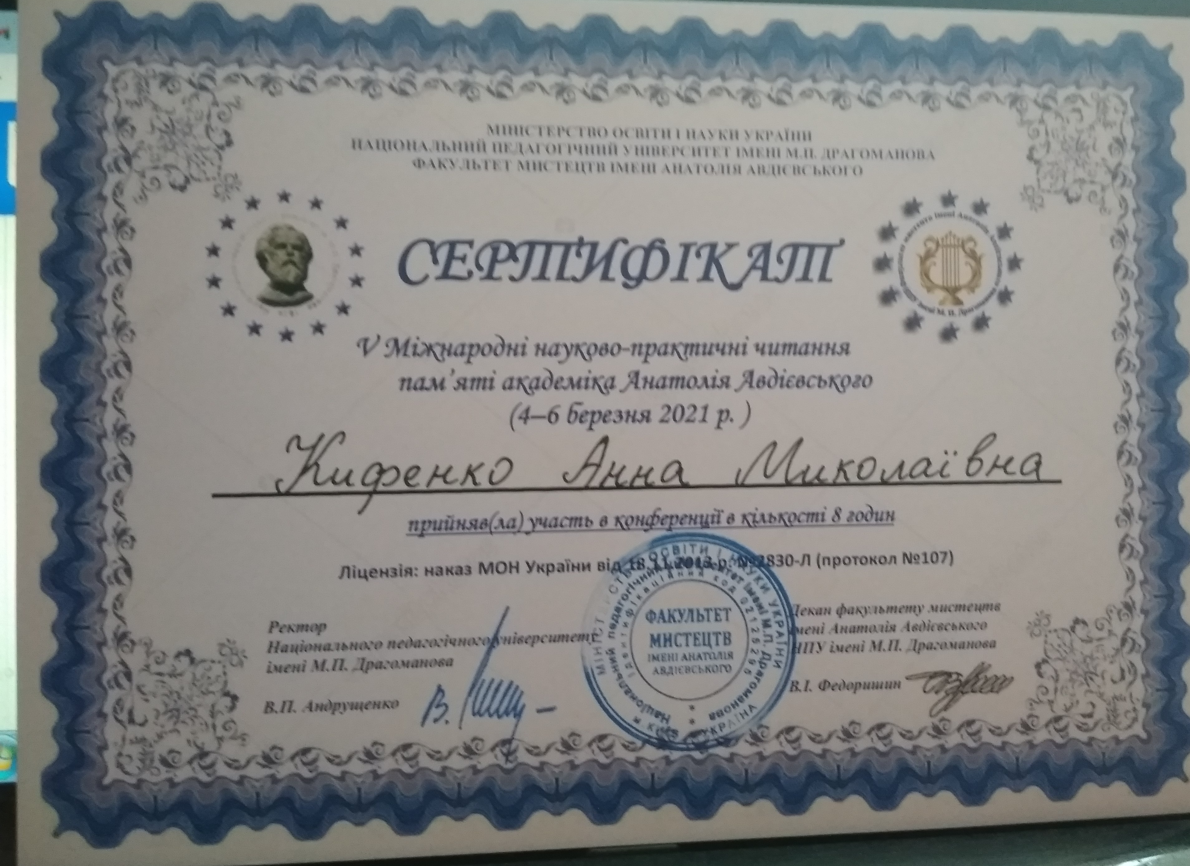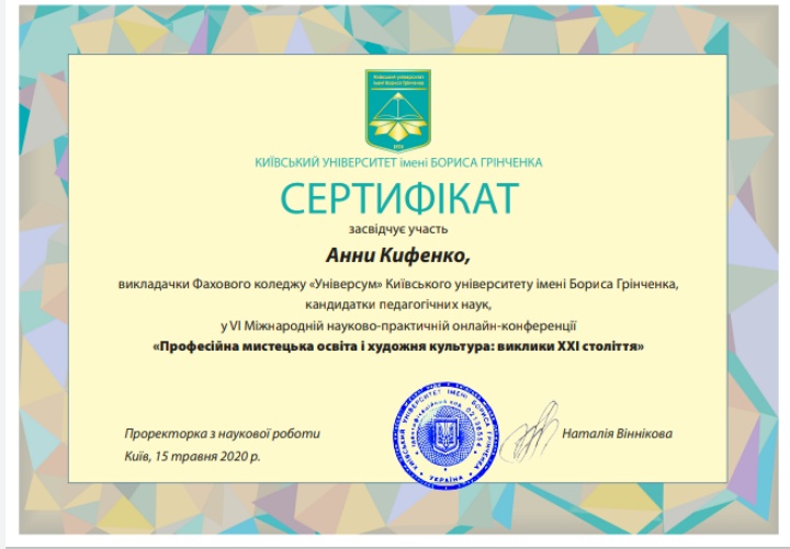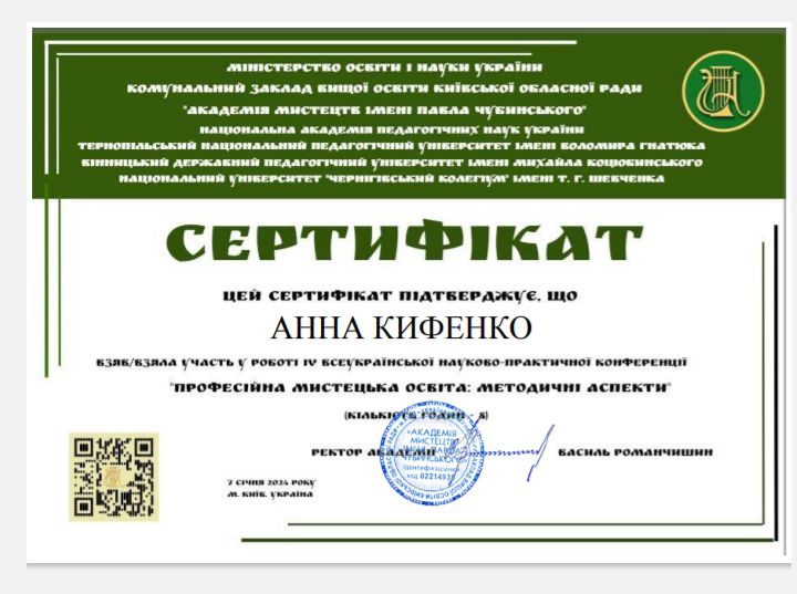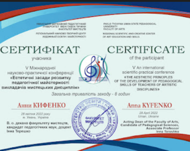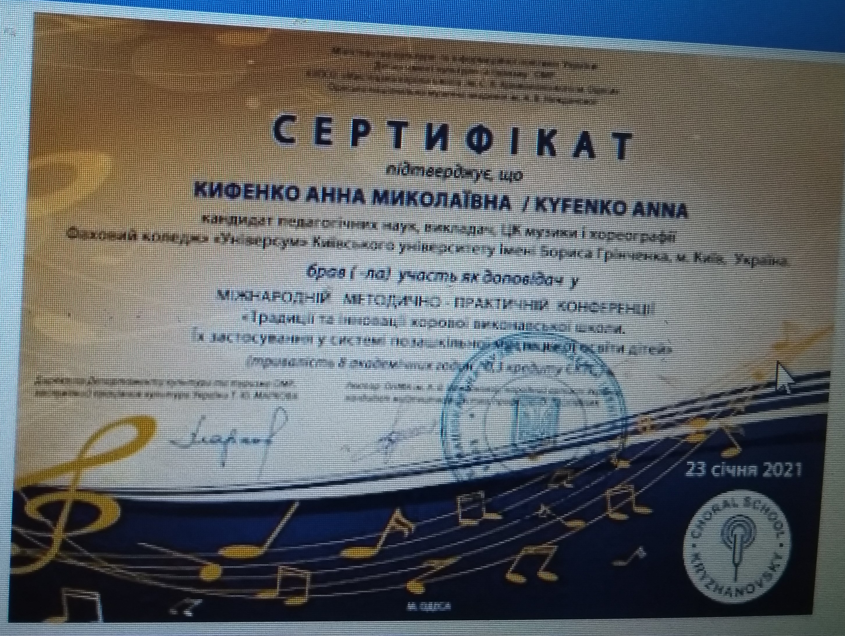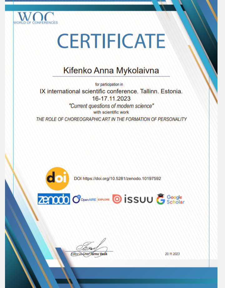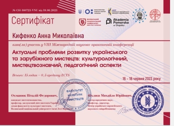 300 Фаховий коледж «Універсум» ЦК музики і хореографії 0.9 0 2023 https://www.researchgate.net/profile/Anna_Kifenko