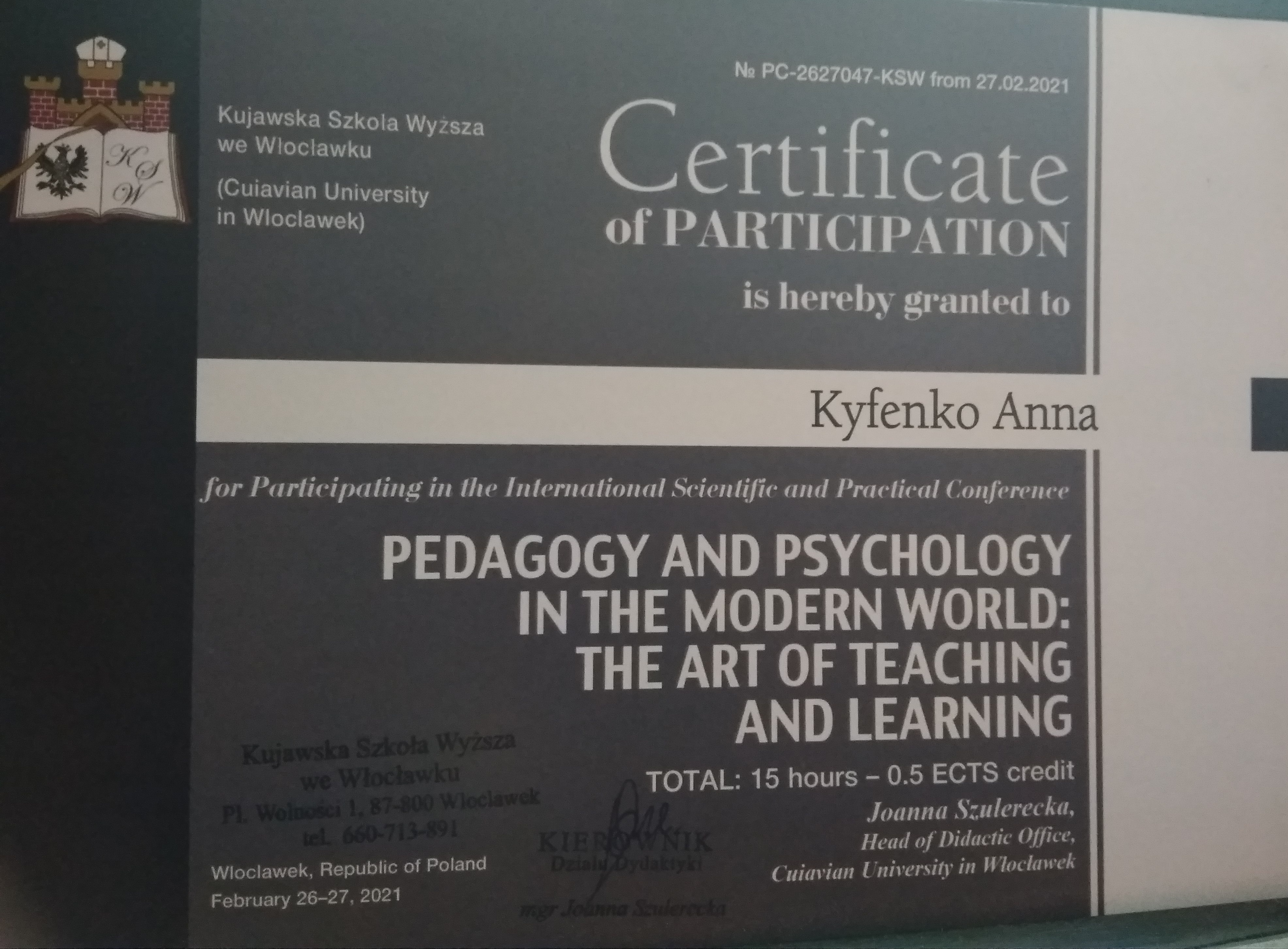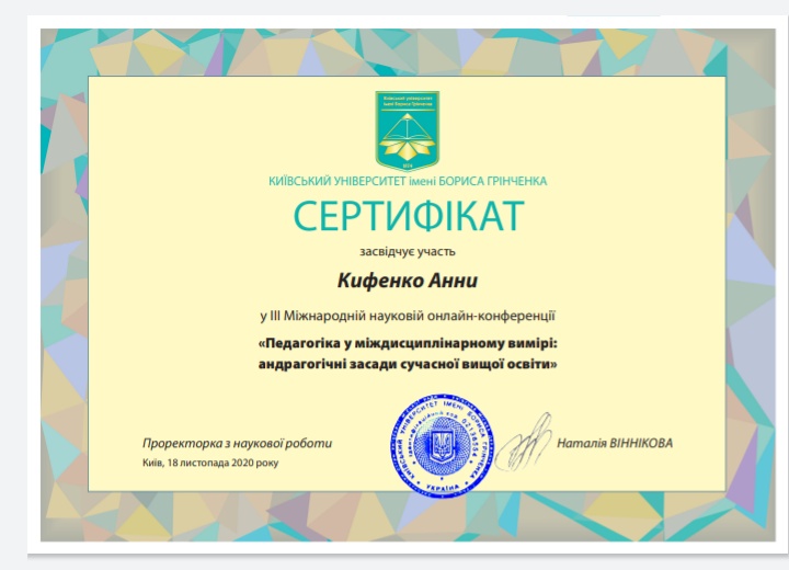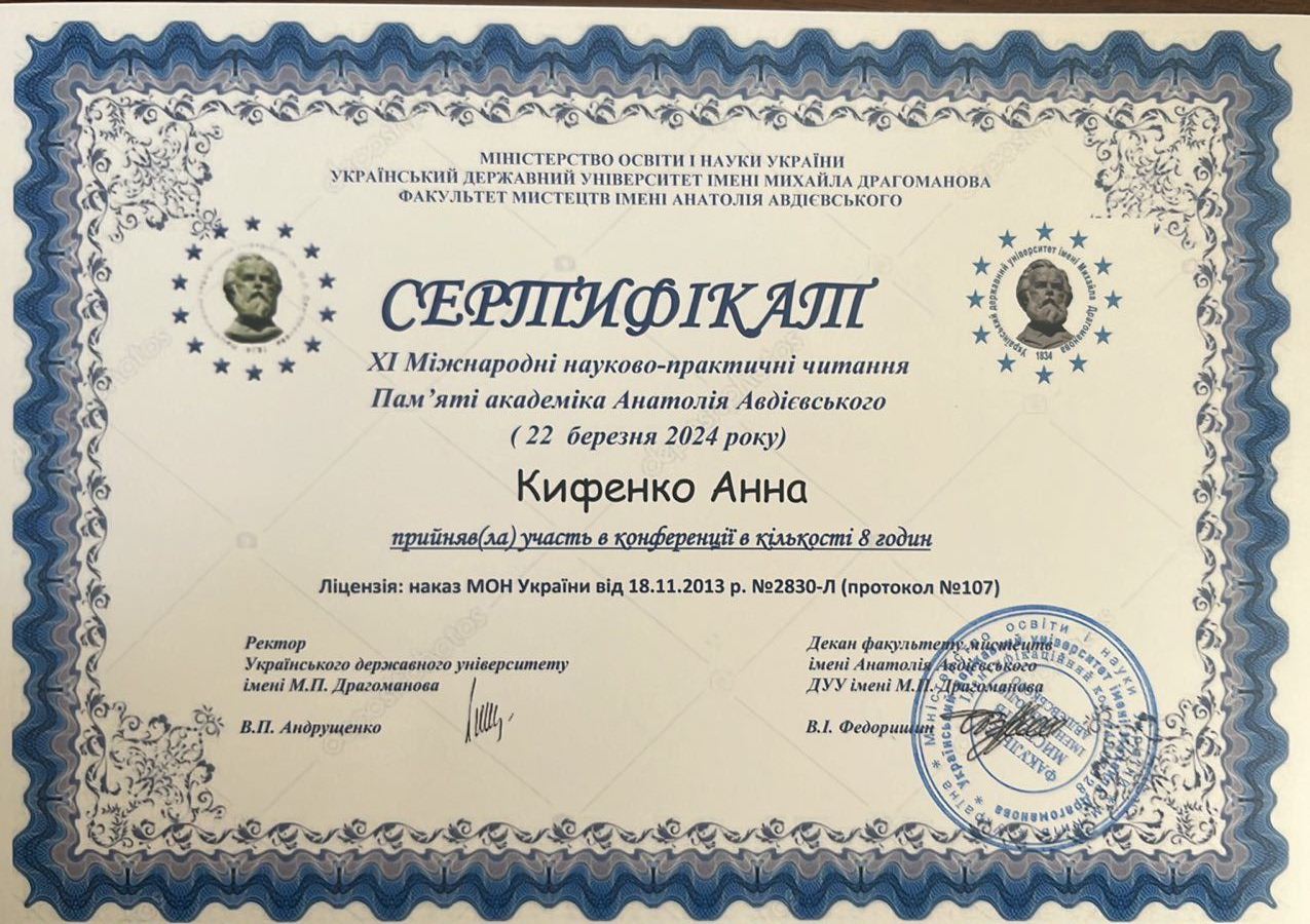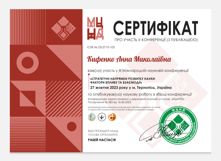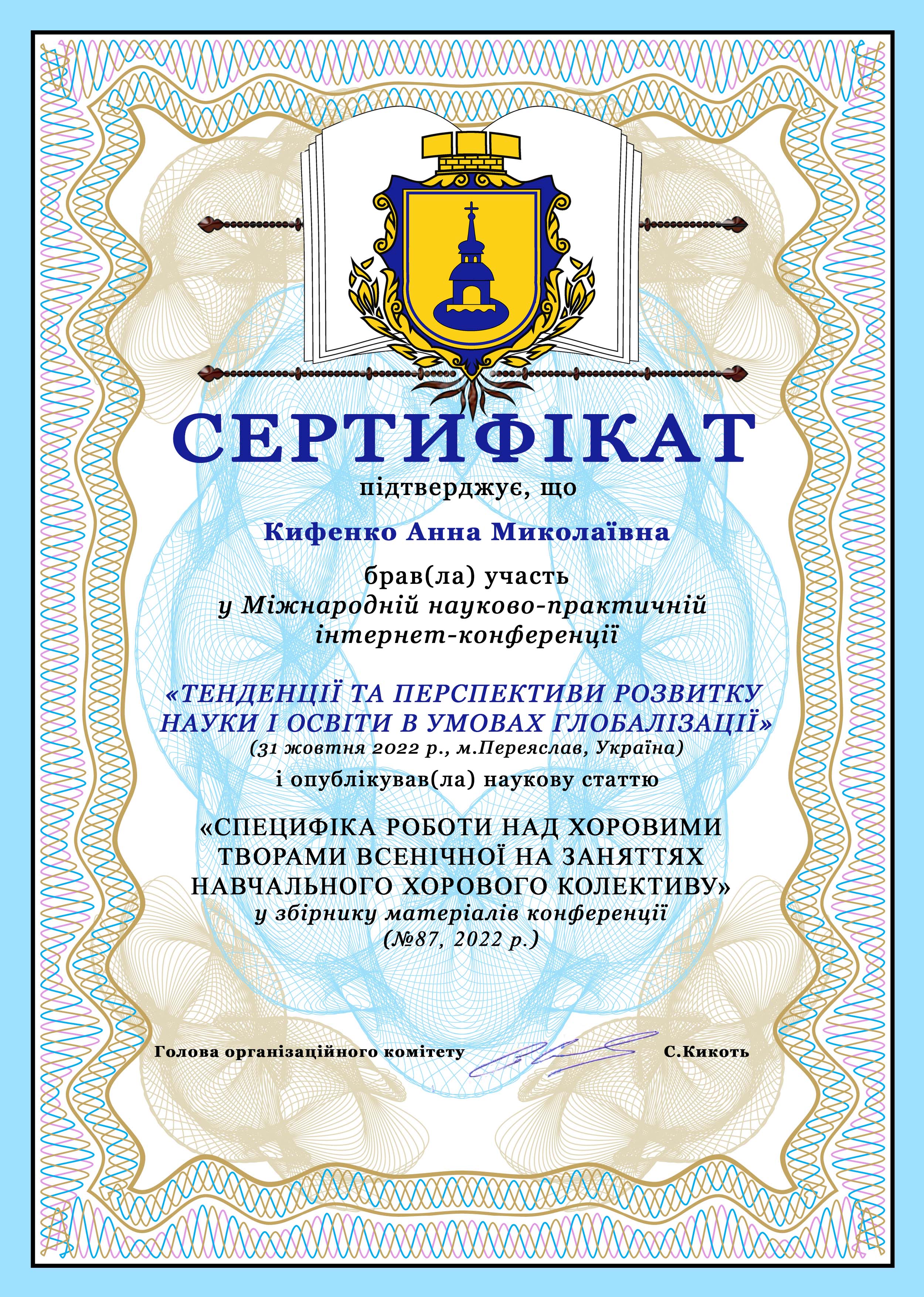 300 Фаховий коледж «Універсум» ЦК музики і хореографії 0.9 0 2023 https://www.researchgate.net/profile/Anna_Kifenko